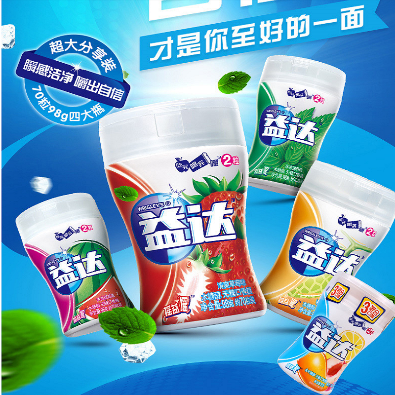益达 木糖醇清爽西瓜味40粒瓶装56g