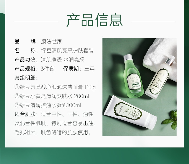 魔法世家绿豆水乳套装油皮补水保湿女护肤品学生痘肌肤 可有效改善油性皮肤
