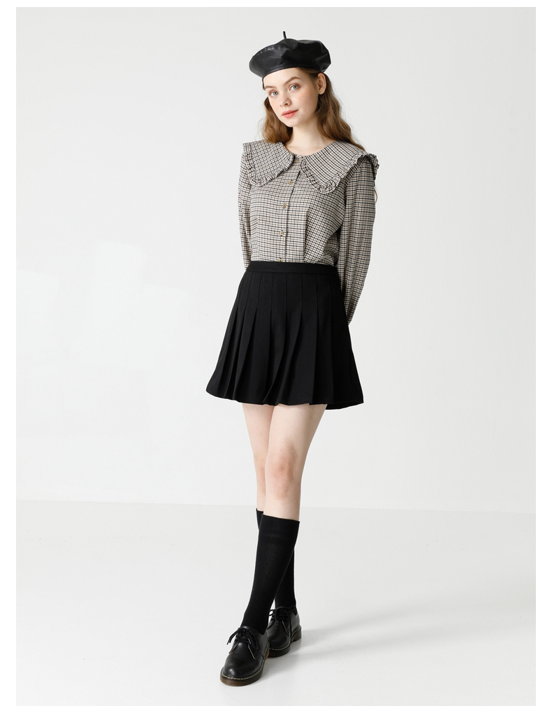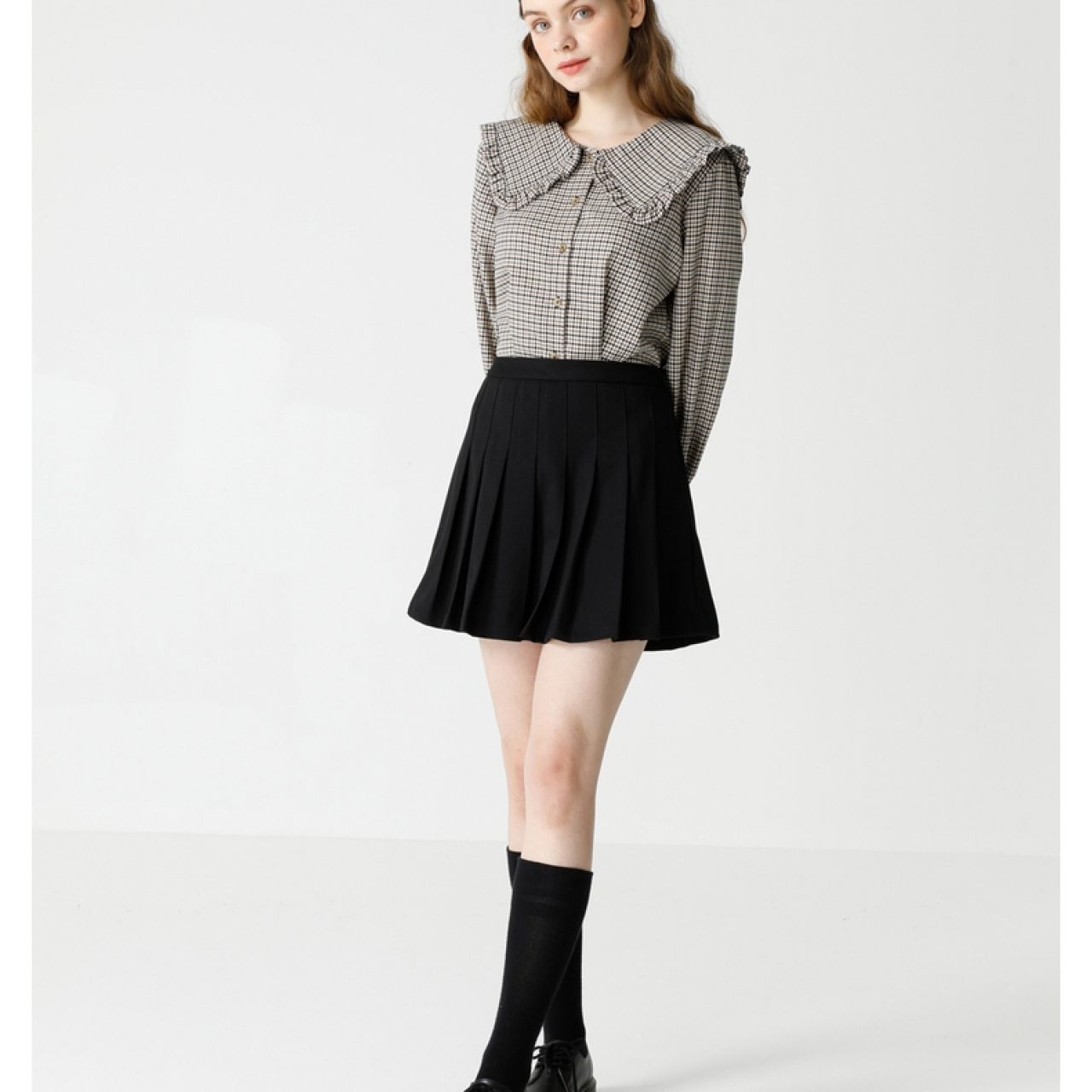 C&A复古学院风百褶群迷你裙女2020冬新甜美A字短裙CA200231183-H0 XS