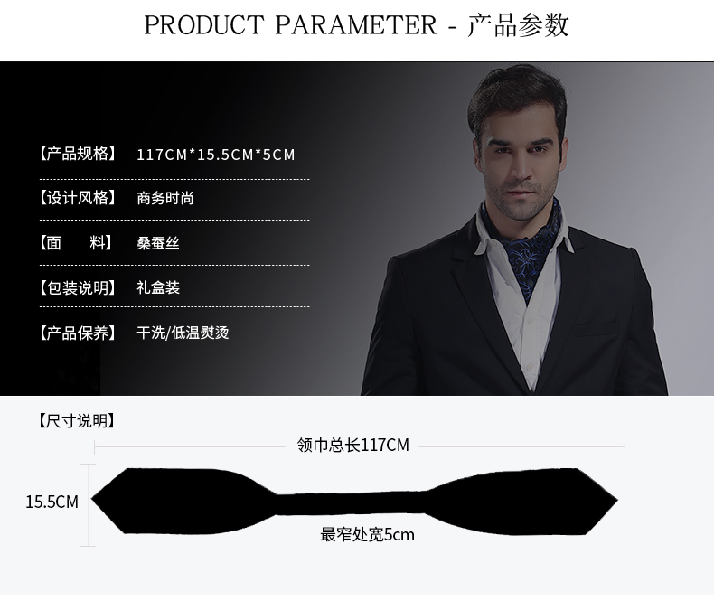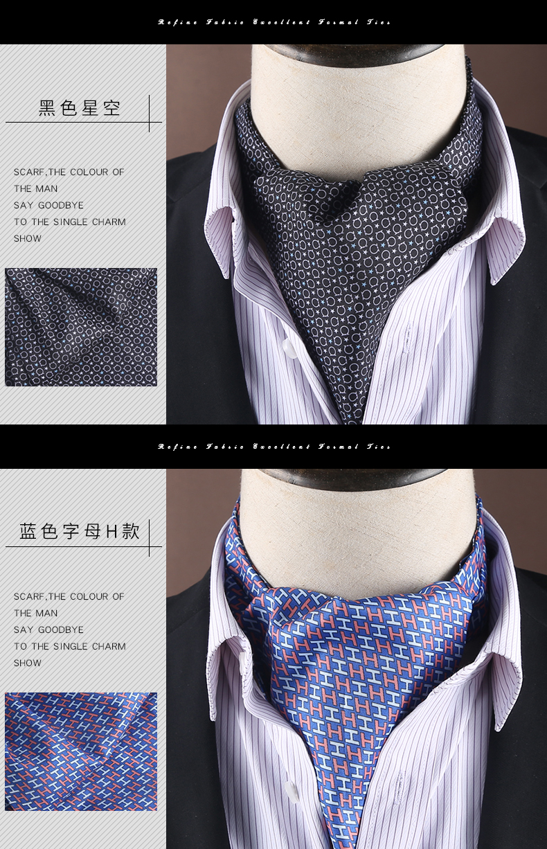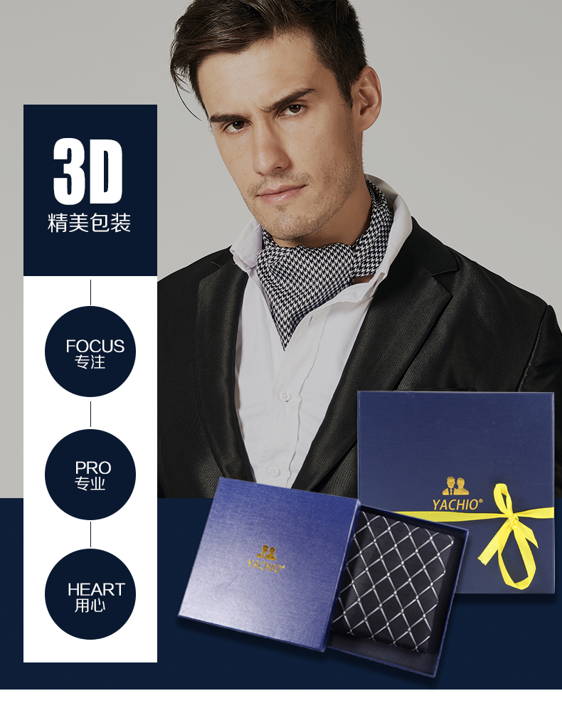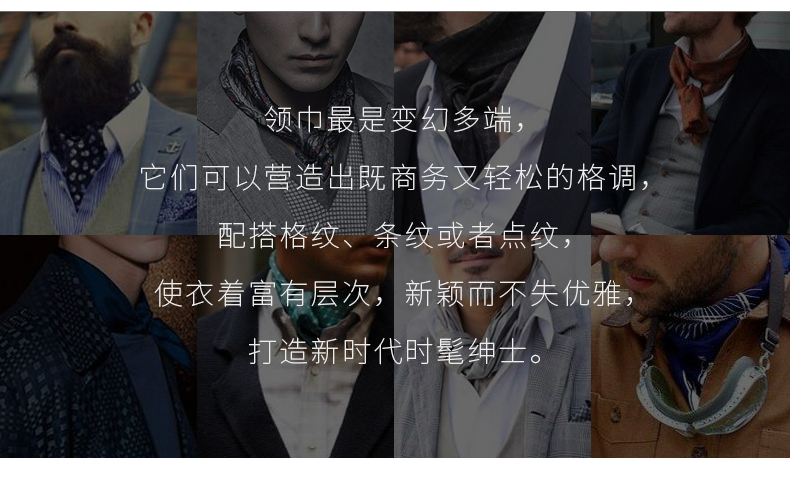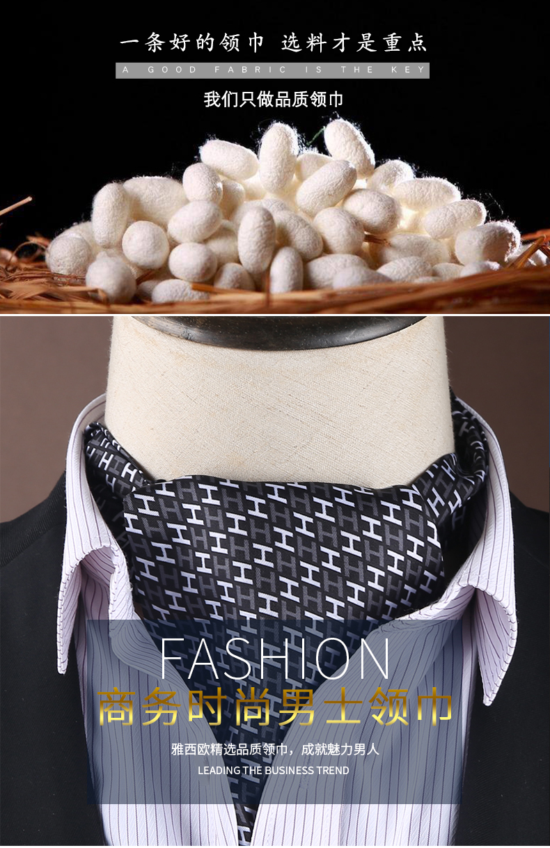 雅西欧男士真丝丝巾衬衫领巾桑蚕丝双面印花领口巾商务正装围巾冬