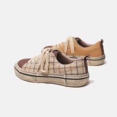 2020春季新款韩版港风脏脏板鞋女学生休闲鞋平底格子百搭帆布鞋女