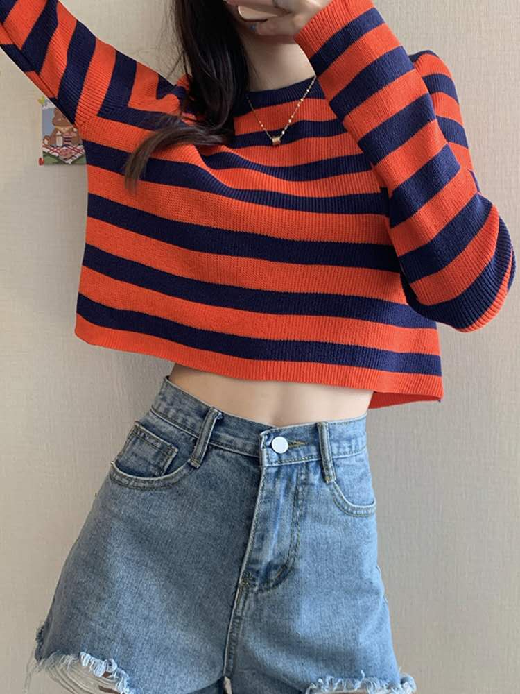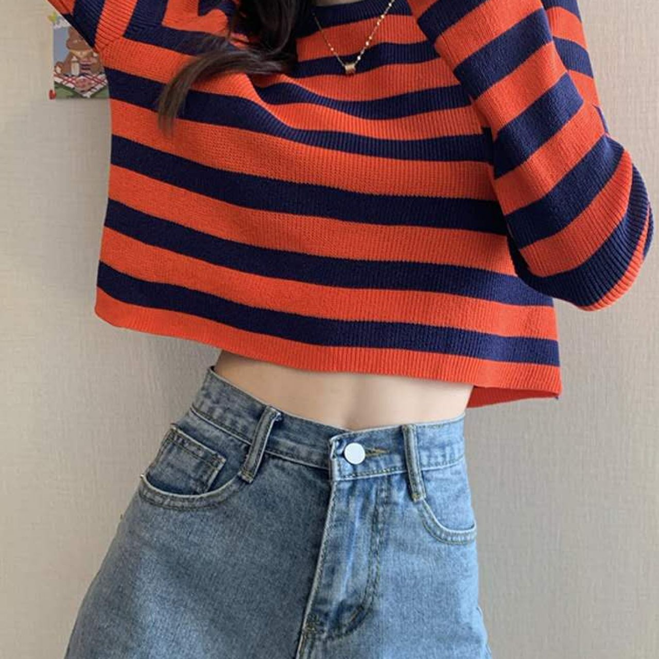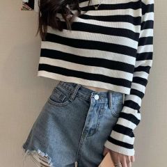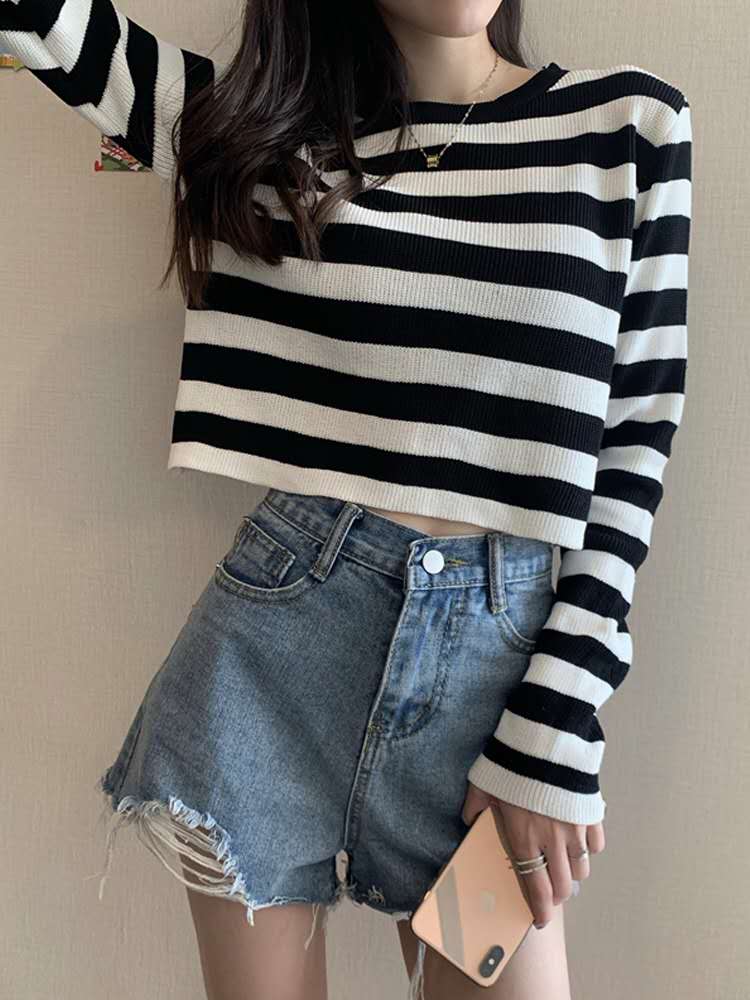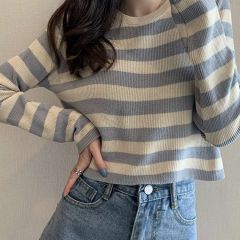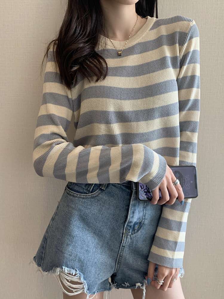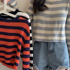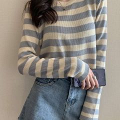女款T恤条纹针织长袖T恤2020新款韩版宽松显瘦ins潮