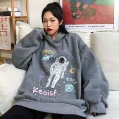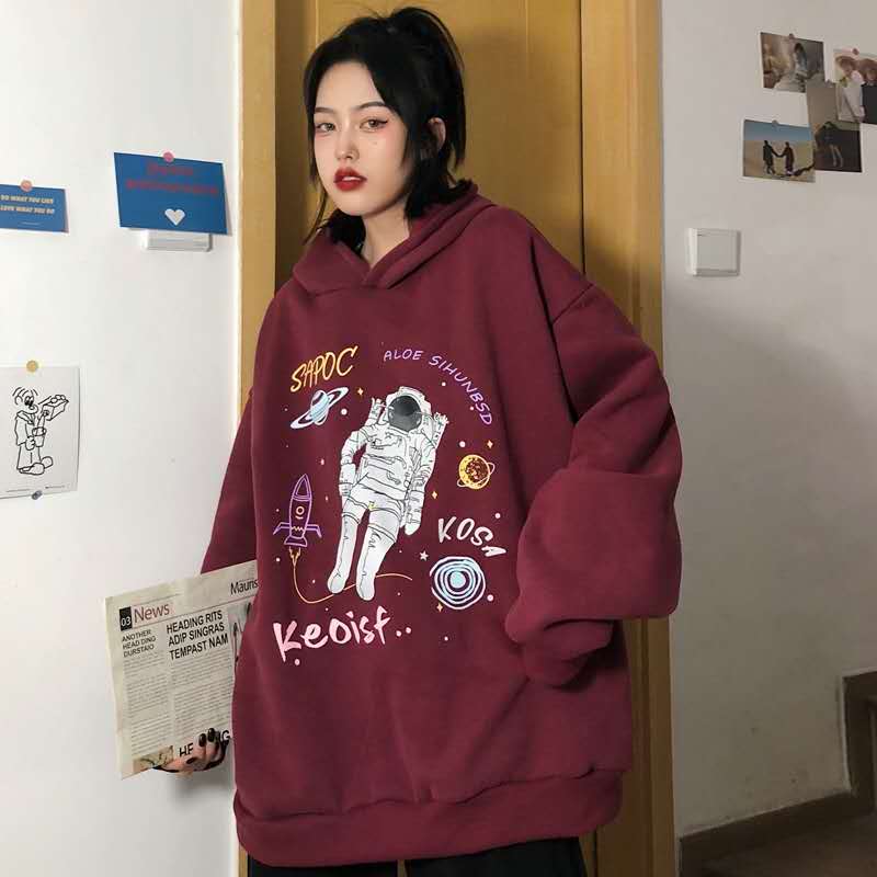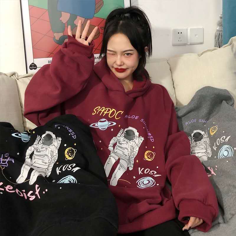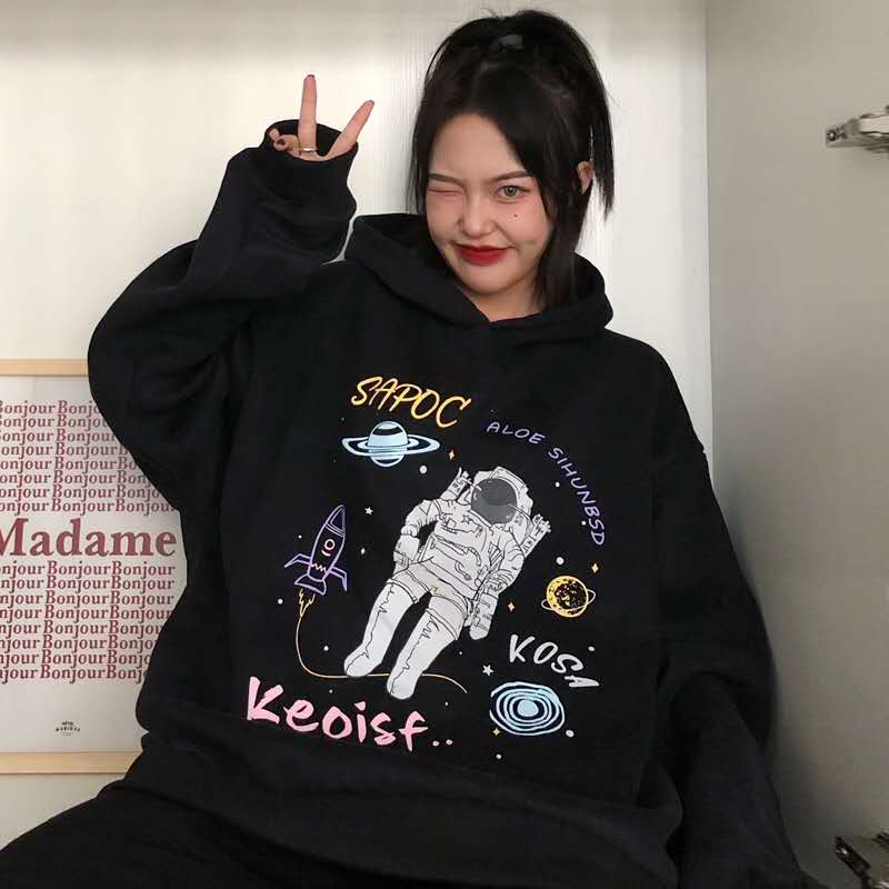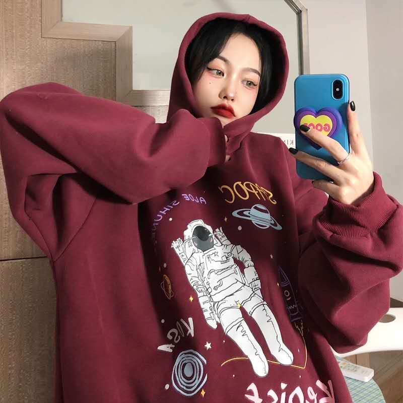 宇航员卫衣女秋冬宽松版慵懒风加绒加厚超火外套