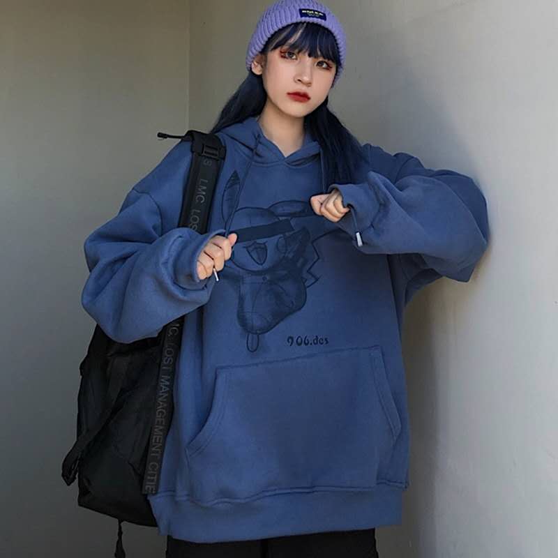 潮牌港味卫衣女冬宽松韩版慵懒风加绒加厚港风复古外套