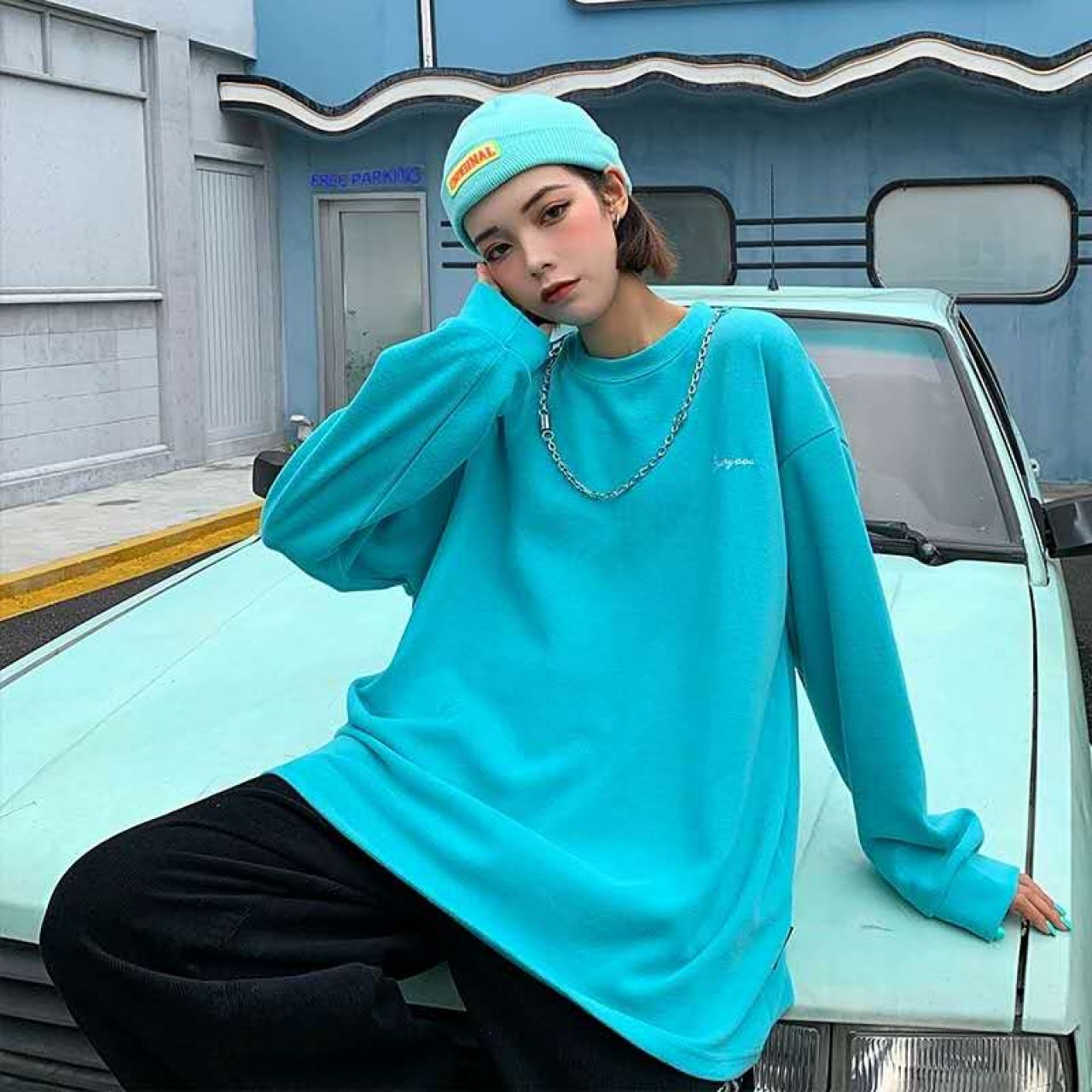 BG湖蓝色卫衣女盐系宽松bf春秋慵懒风oversize炸街长袖上衣ins潮