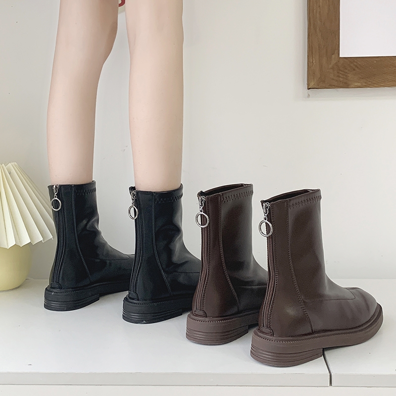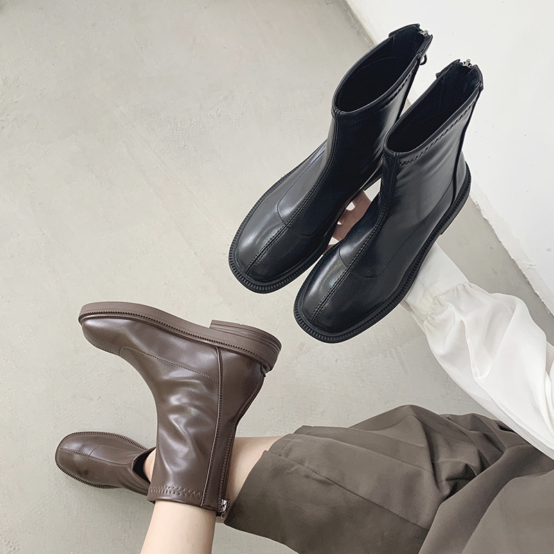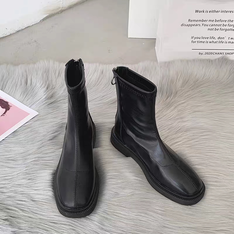 复古秋季女士短靴方头粗跟,新款英伦风,适合各年龄段穿