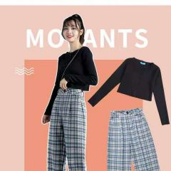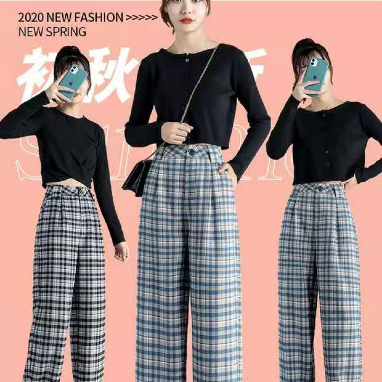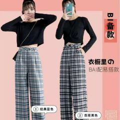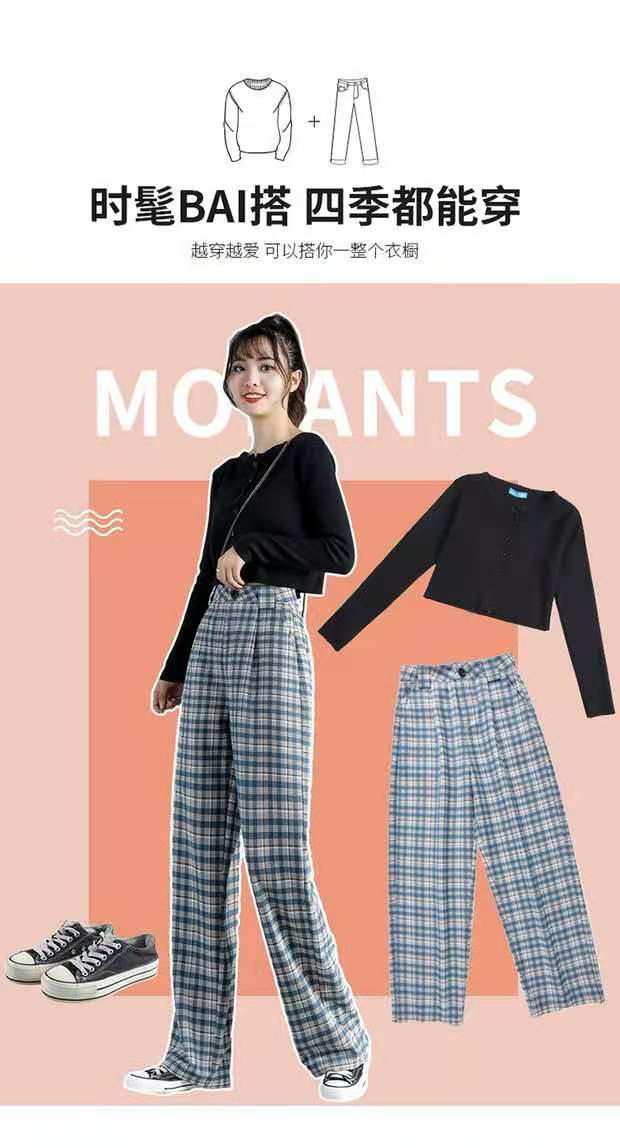 一口苏达格子裤巨显腿长秋冬小个子高腰垂感阔腿裤拖地休闲直筒裤
