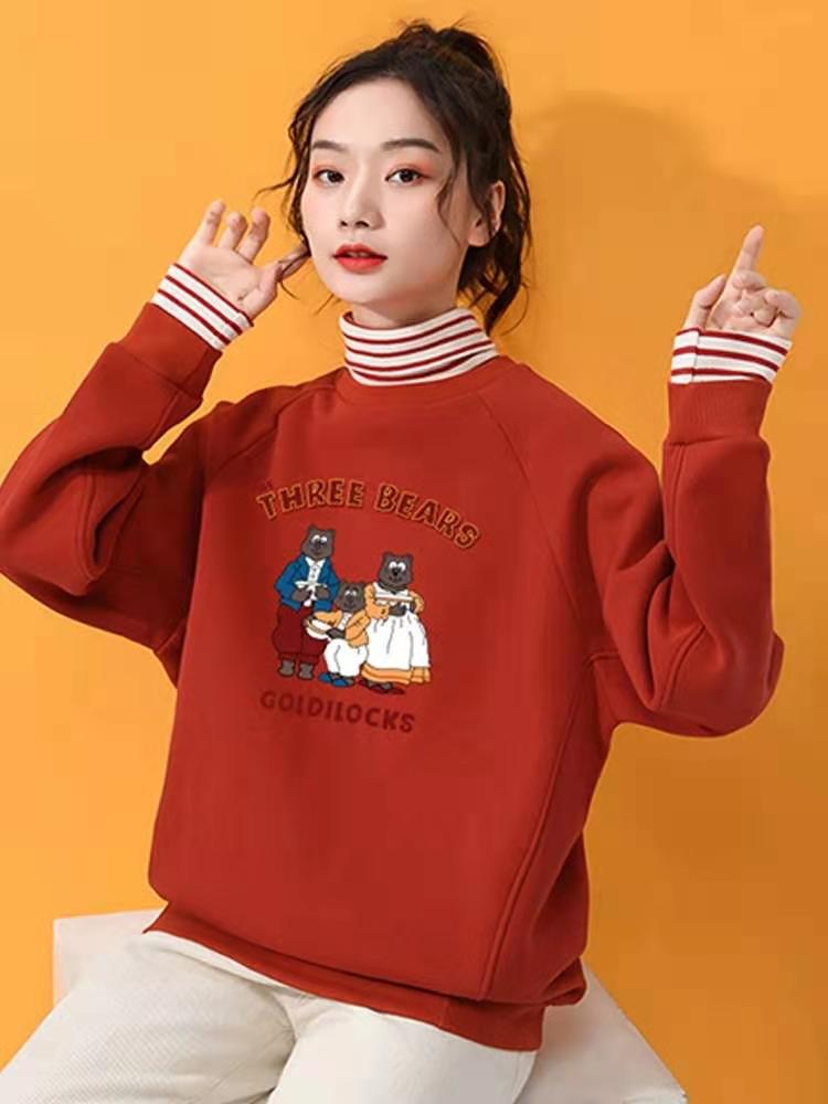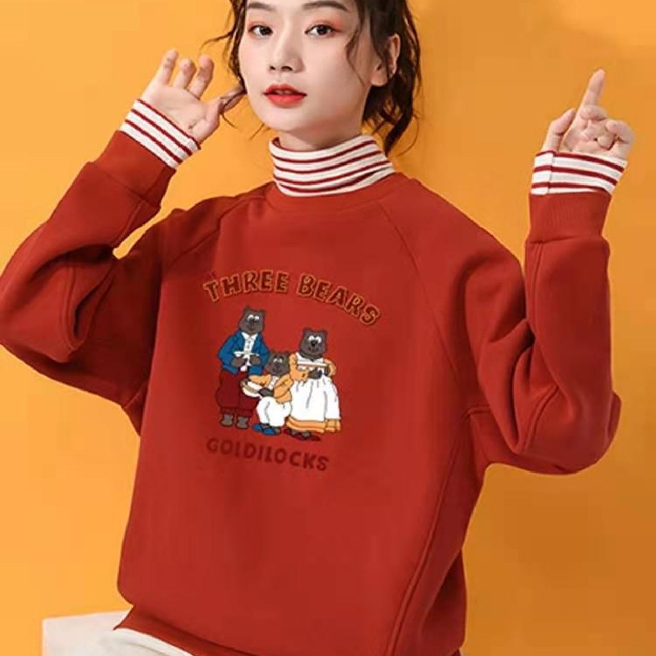 米子旗2020年新款秋冬加绒卫衣女高领长袖宽松日系上衣外套潮ins