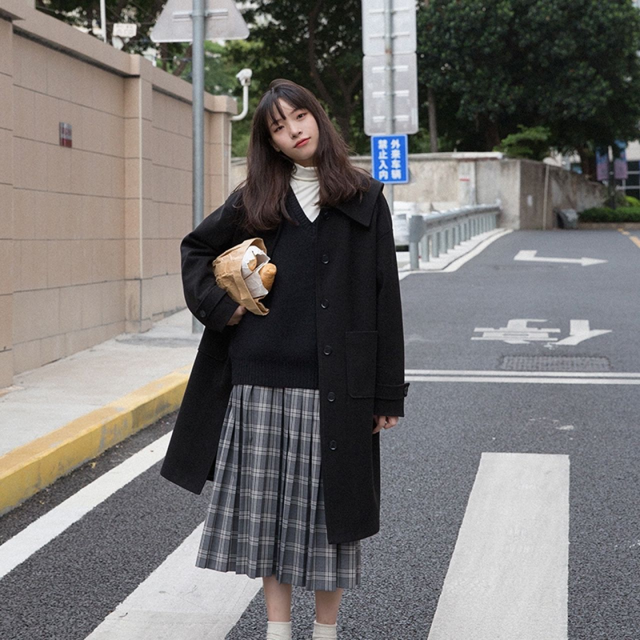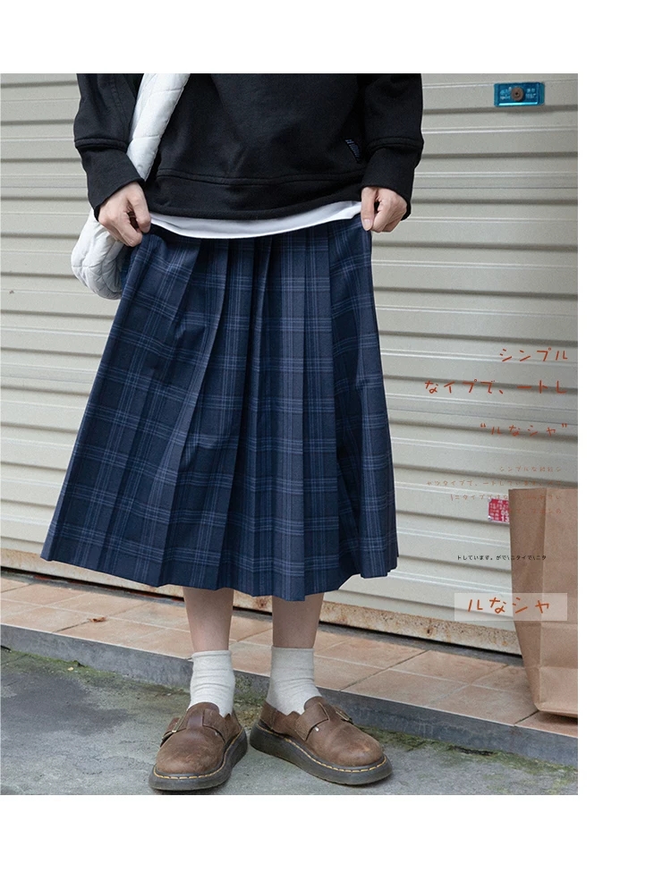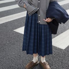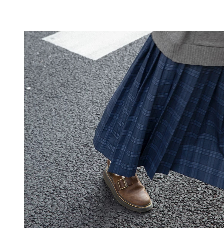格子百褶裙日系学院风显瘦A字半身裙中长款女秋冬