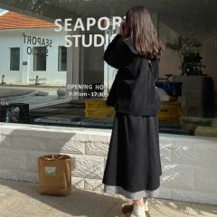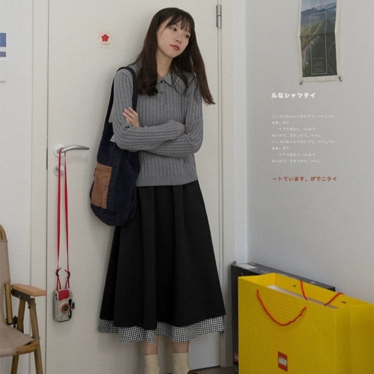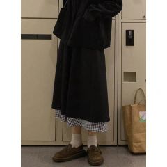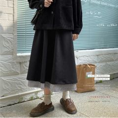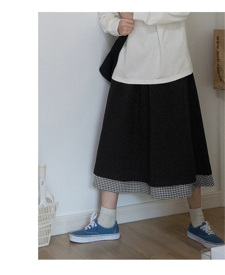 格子拼接黑色半身裙法式显瘦A字裙2020秋季新款