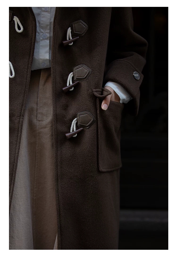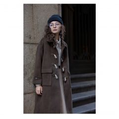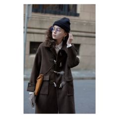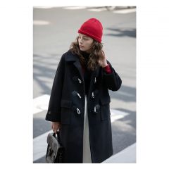 牛角扣呢子大衣女中长款2020秋冬新款韩版宽松小个子毛呢外套