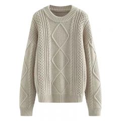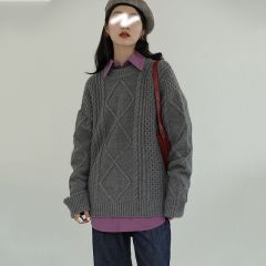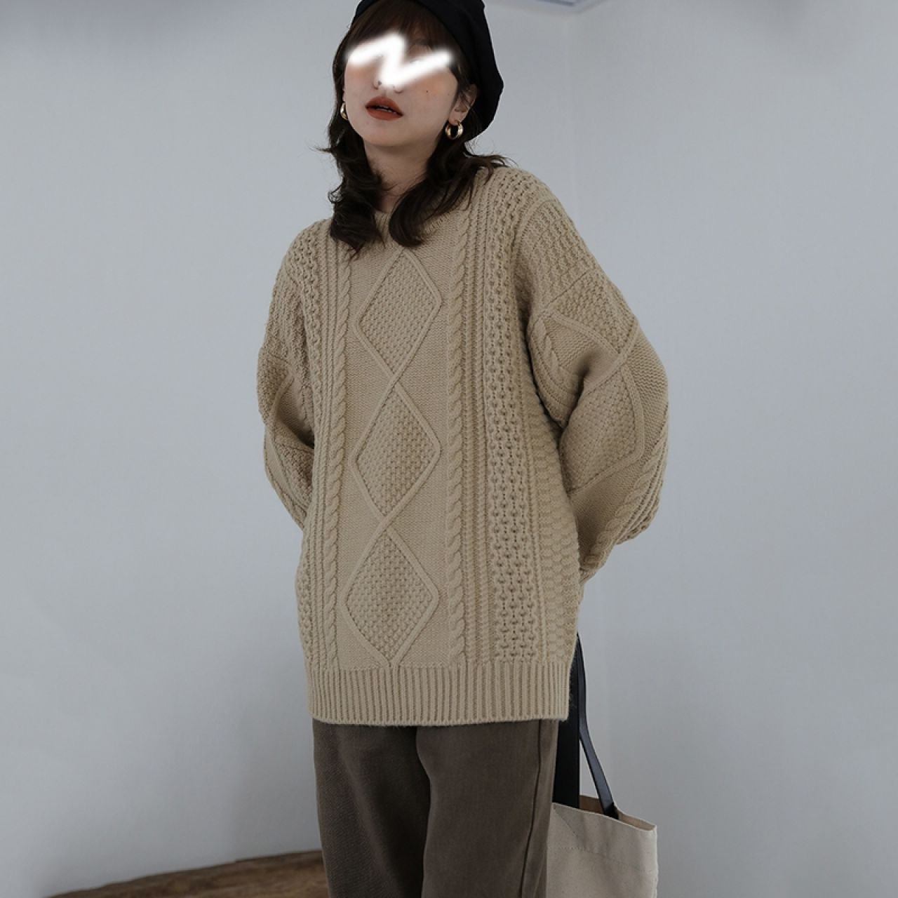 秋冬日系复古加厚麻花毛衣女宽松外穿慵懒风套头粗毛线针织衫上衣