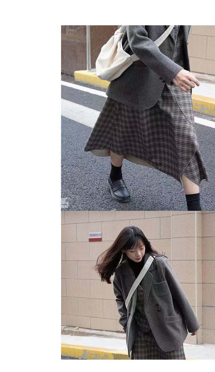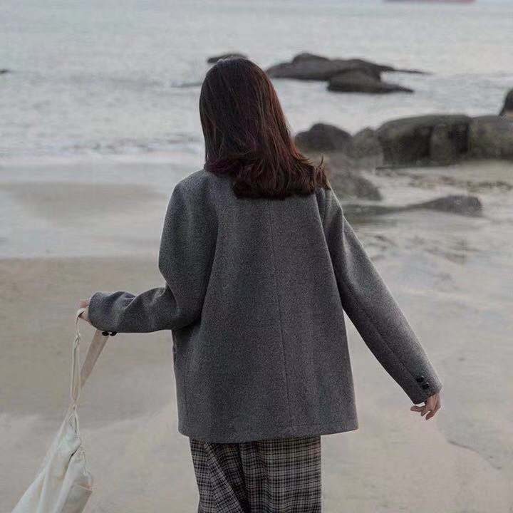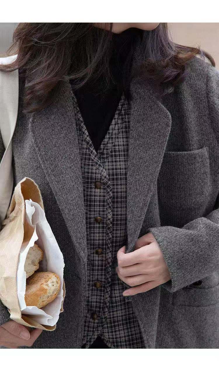 自制 哥德堡的五点半 高级感灰色西装毛呢外套女复古
