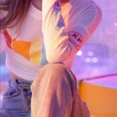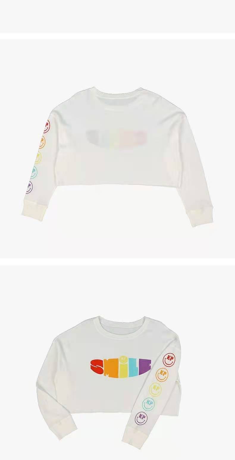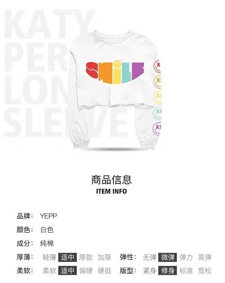 yepp katy perry联名水款smile 高腰露肚果姐同脐短款女士长袖T恤