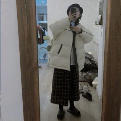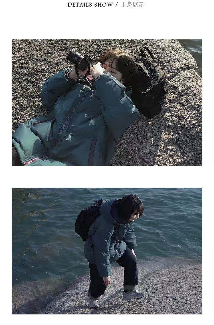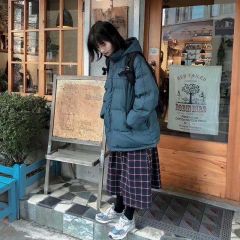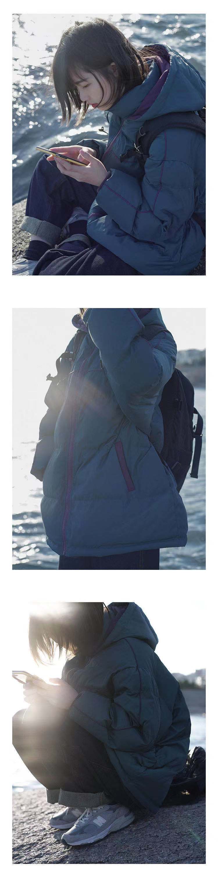 日系秋冬季棉袄加厚夹棉外套宽松面包服中长款连帽棉服女