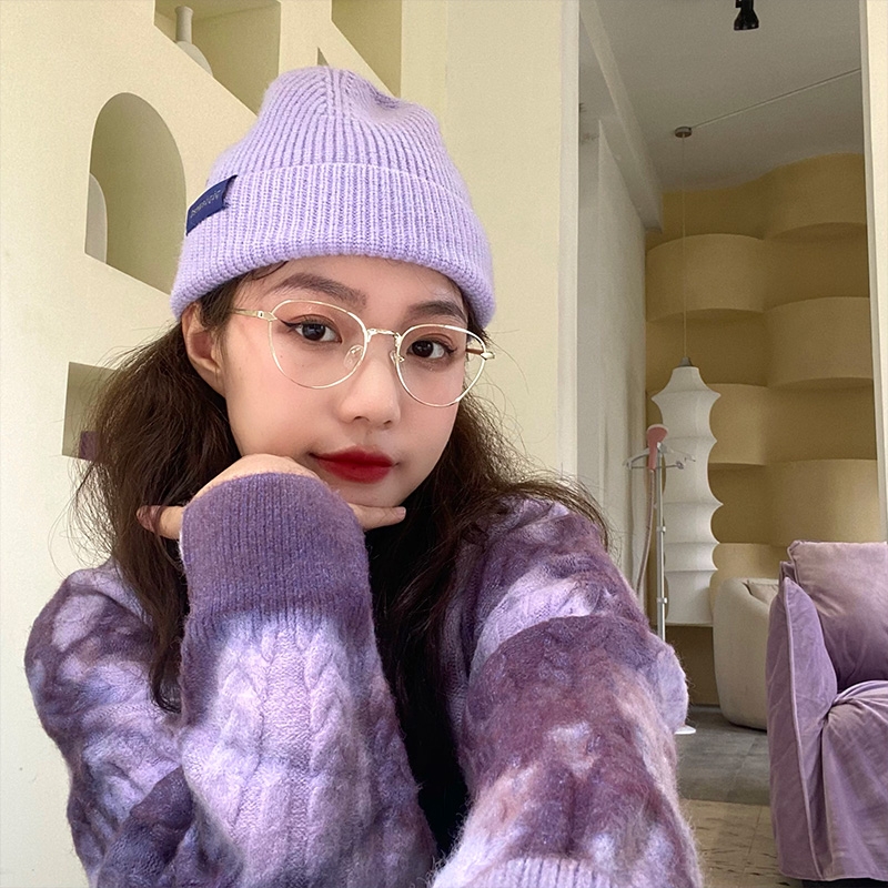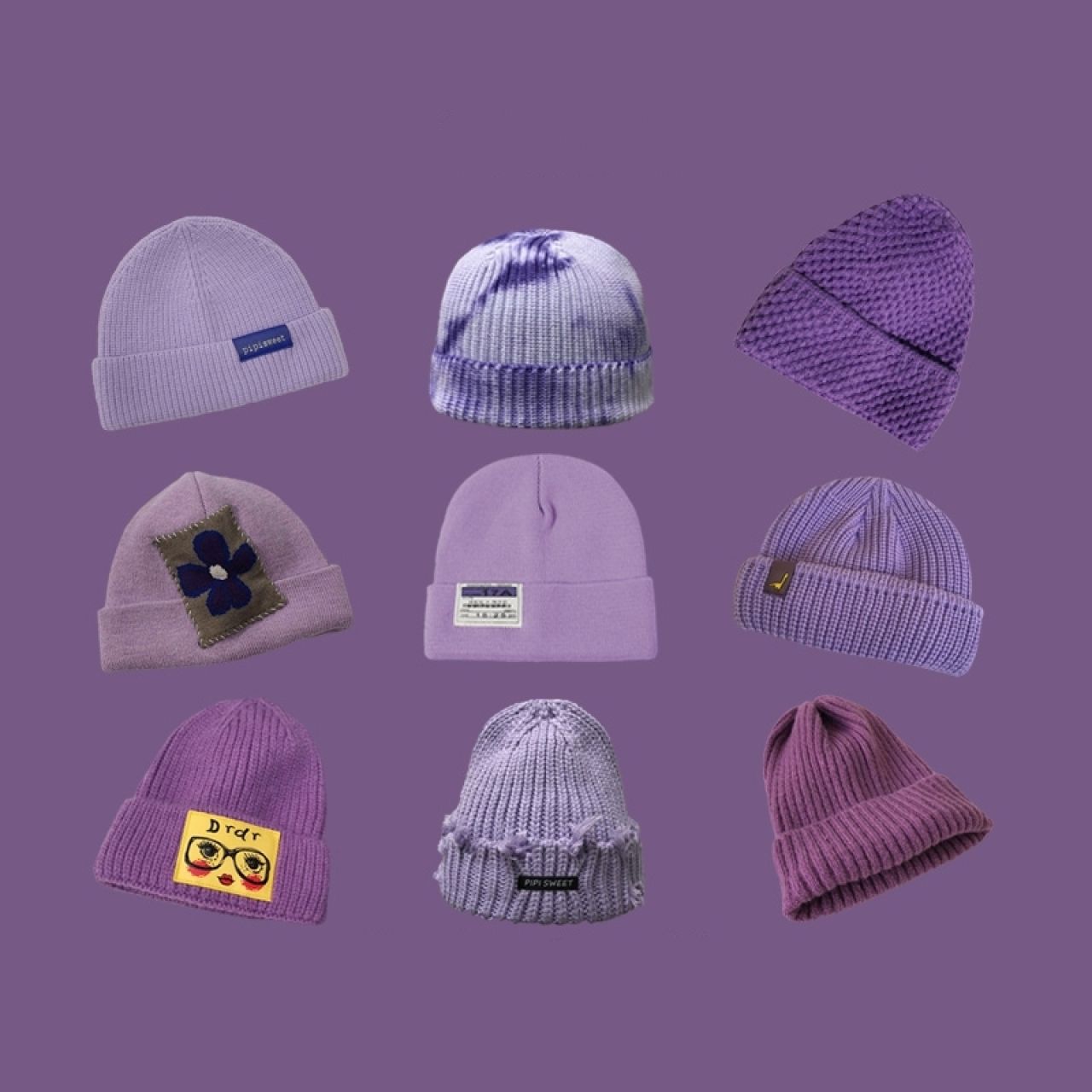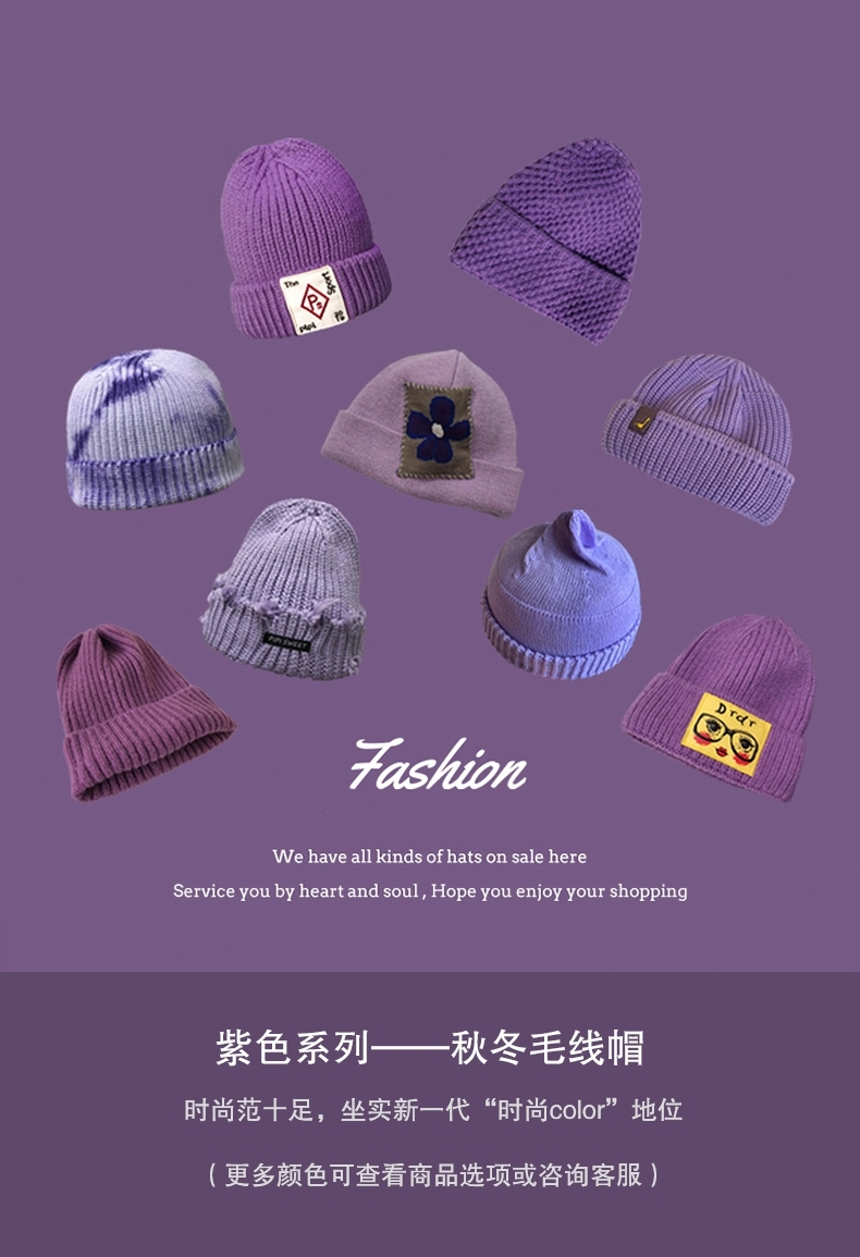 purple紫色针织帽女潮秋冬帽子百搭ins嘻哈潮牌香芋紫毛线帽女冬