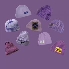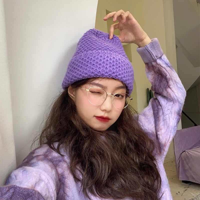 purple紫色针织帽女潮秋冬帽子百搭ins嘻哈潮牌香芋紫毛线帽女