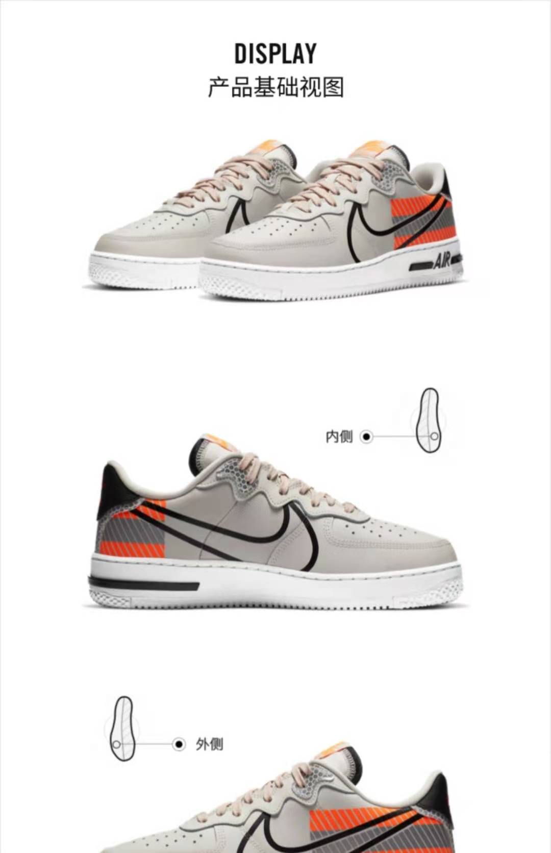 Nike耐克官方 NIKE AIR FORCE 1 REACT LX 3M 男子运动鞋 CT3316