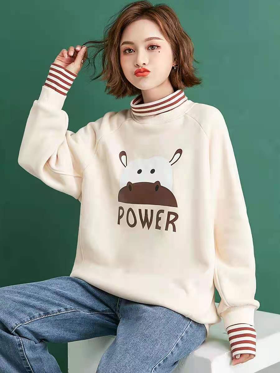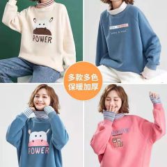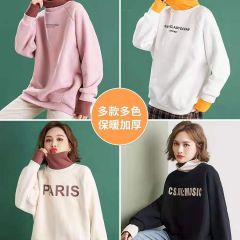 秋冬季假两件卫衣女士2020年新款韩版宽松加绒加厚半高领上衣女装