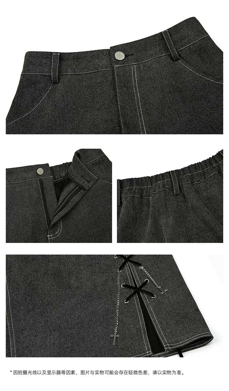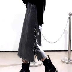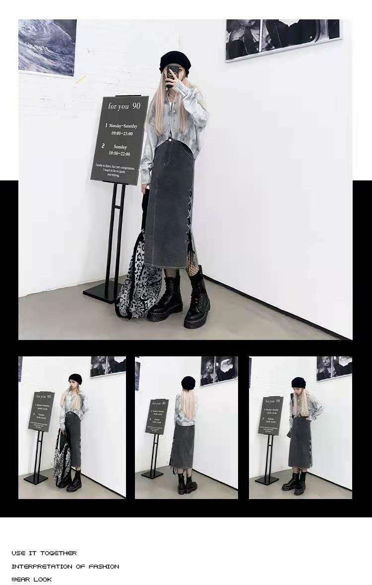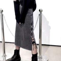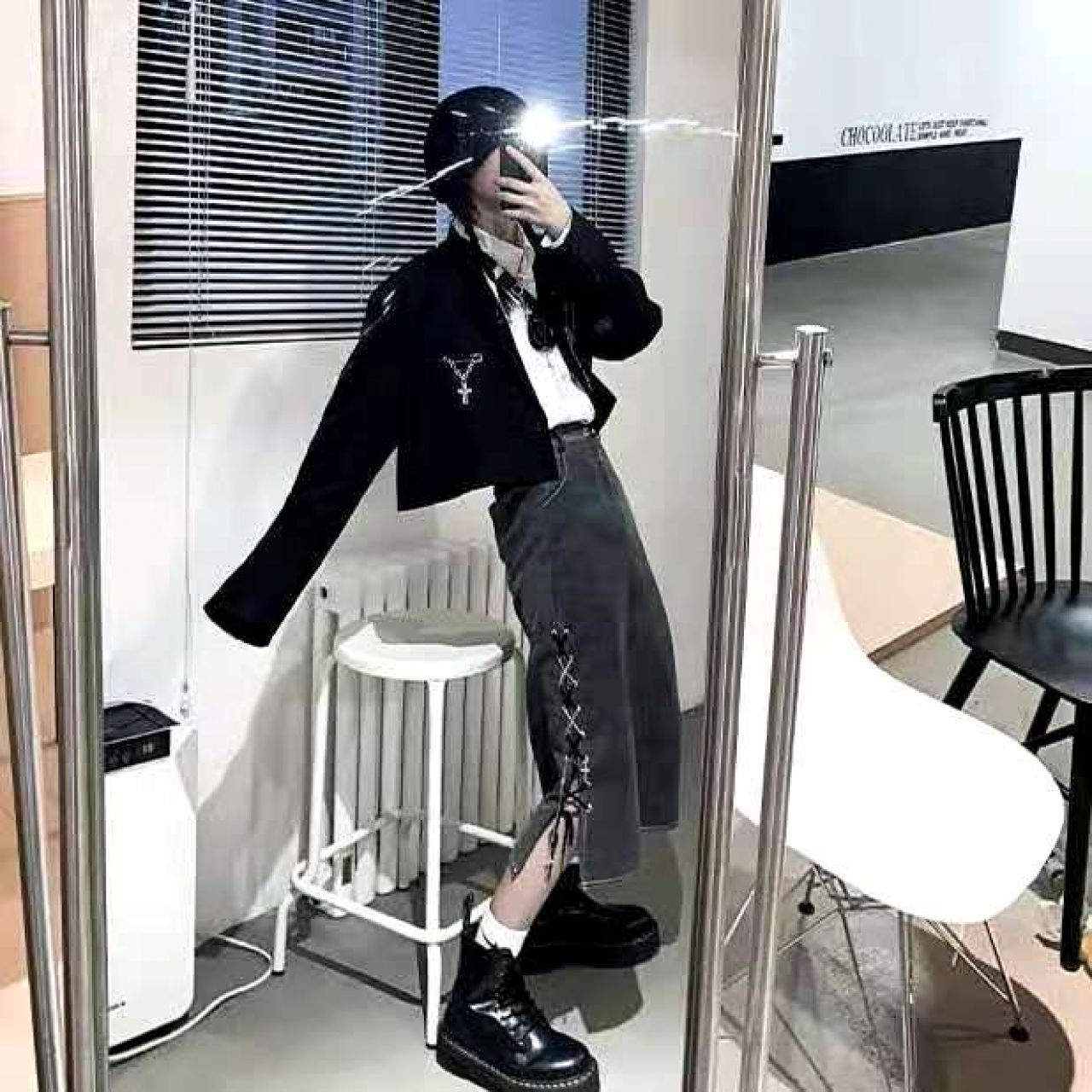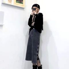 松本丧丧设计感开叉半身裙女中长款秋冬2020新款高腰牛仔裙包臂裙