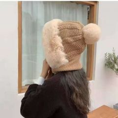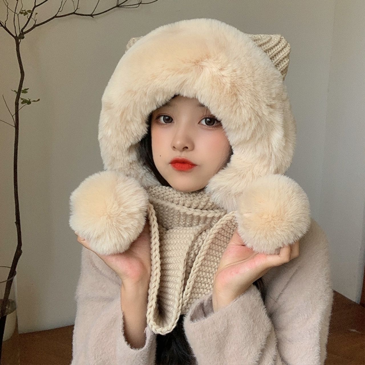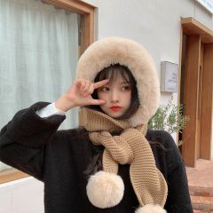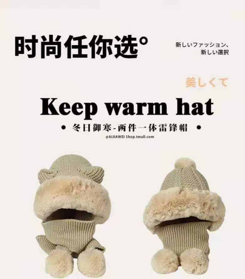 韩版连体帽子围巾一体可爱骑车围脖两件套护耳防风帽女冬雷锋帽