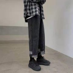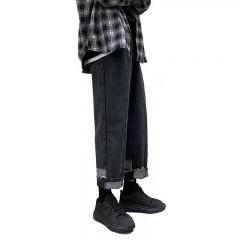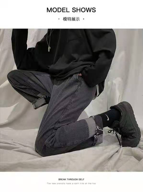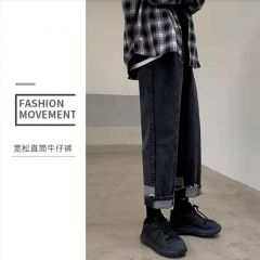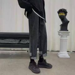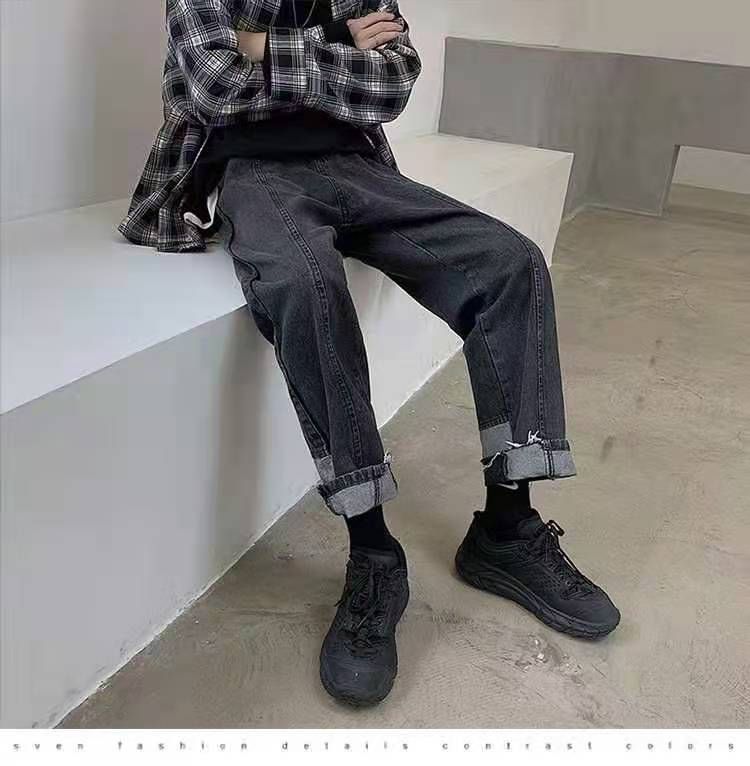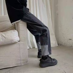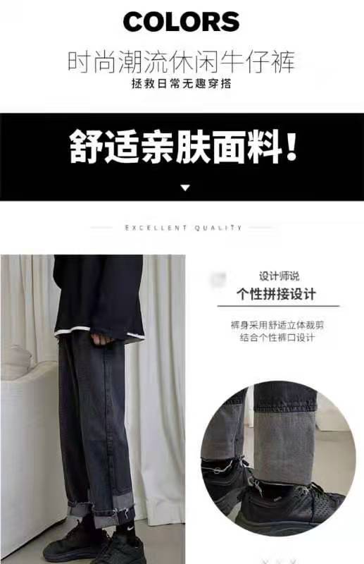 直筒拼接牛仔裤女设计感心机裤子宽松阔腿显瘦百搭2020新款ins潮
