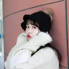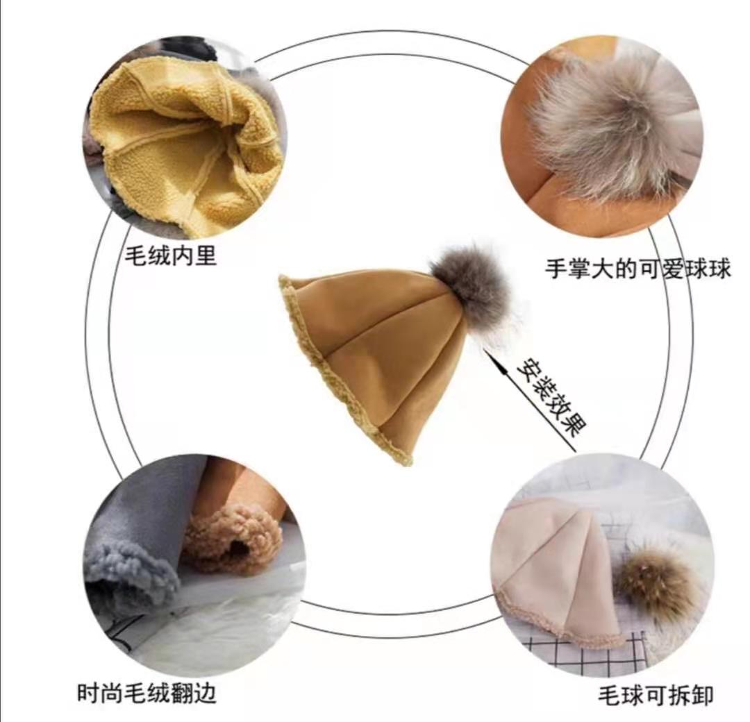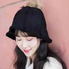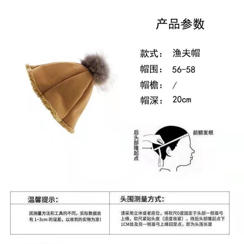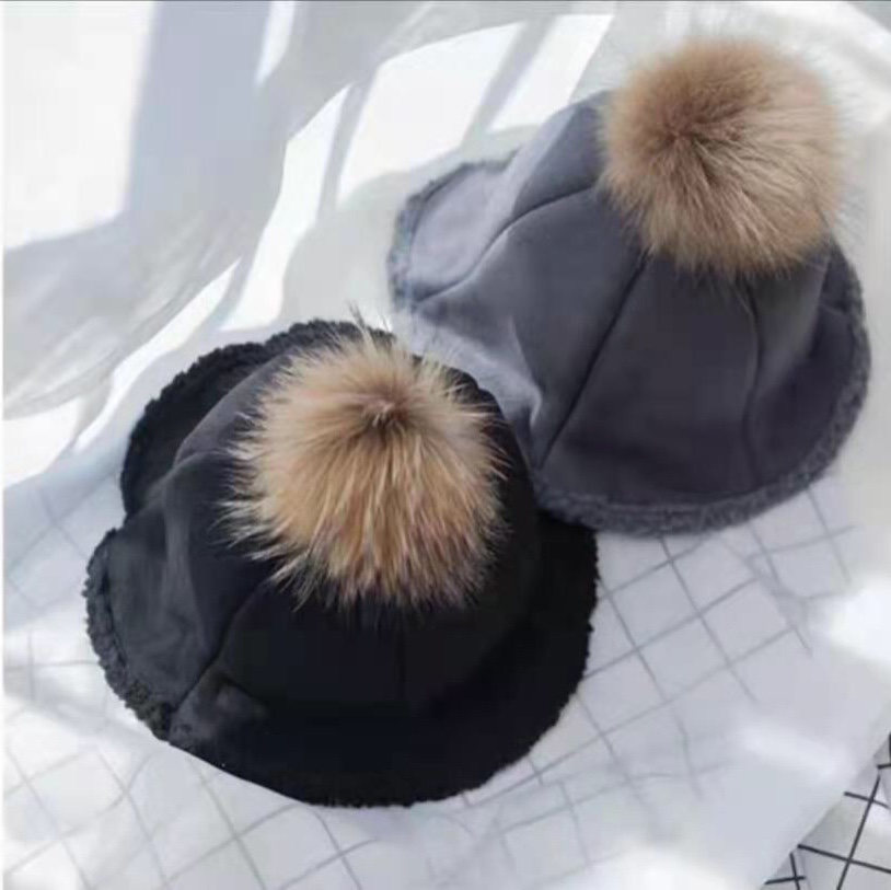 韩国2020秋冬新款可爱麂皮绒羊羔毛渔夫帽卷边毛球保暖女士盆帽子