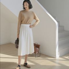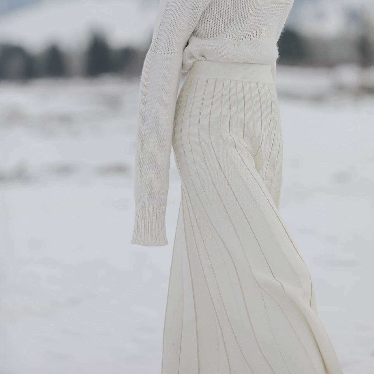 白色金丝百褶高腰针织半身长裙垂感显瘦女复古港味半身裙秋冬w