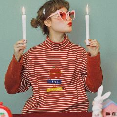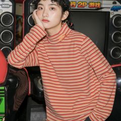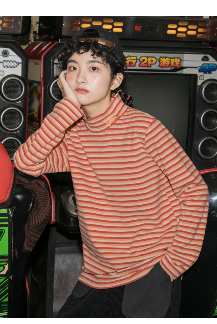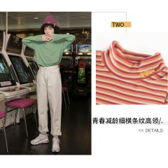 打底衣长袖t恤上衣冬季条纹半高领打底衫女内搭秋冬宽松2019洋气
