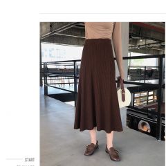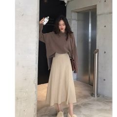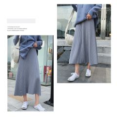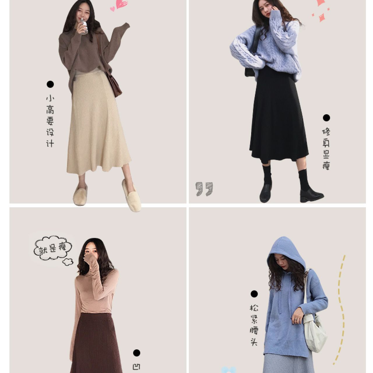 针织半身裙2020新款韩版高腰中长款毛织卡其色百搭a字裙子秋冬女