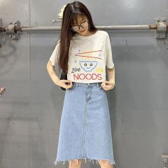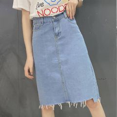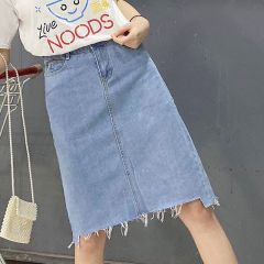 帛卡琪2020新款ins高腰毛边宽松显瘦包臀中长款A字牛仔半身裙女夏