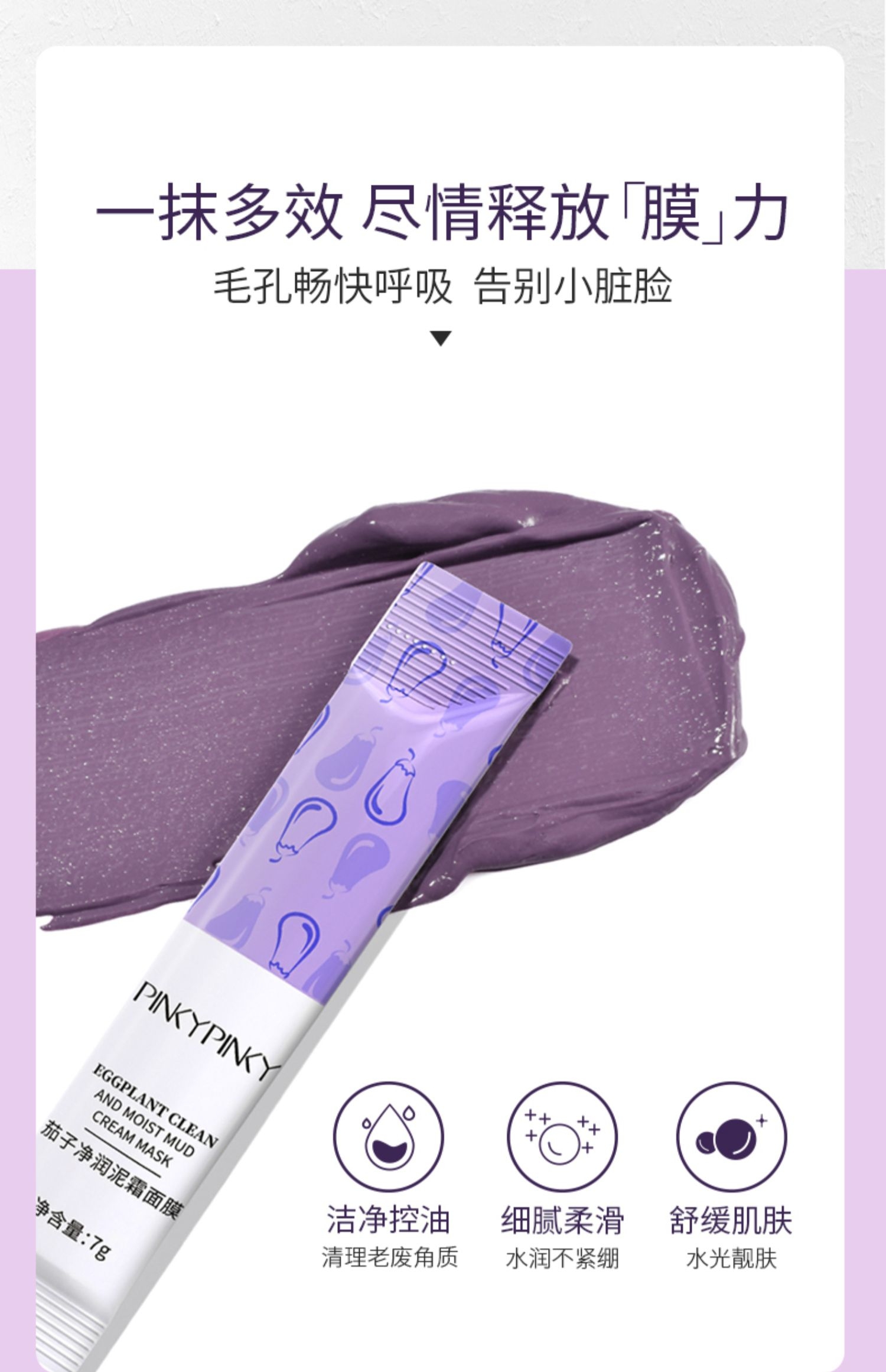 茄子清洁面膜泥涂抹式深层清洁毛孔收缩控油去黑头粉刺女