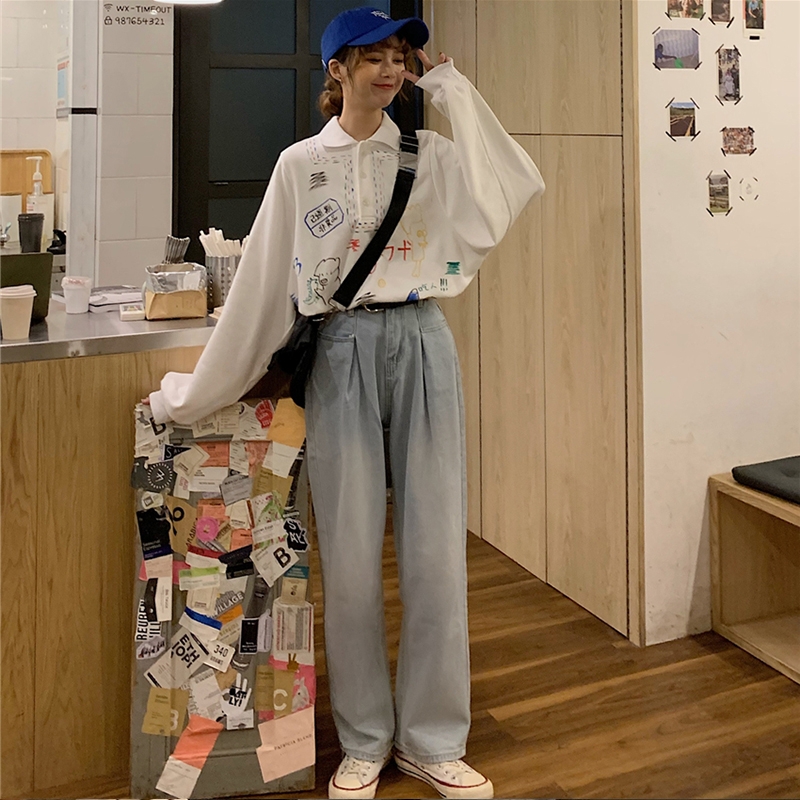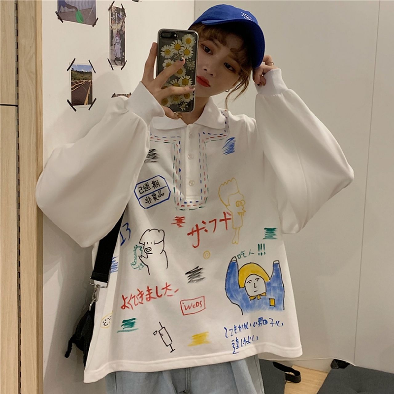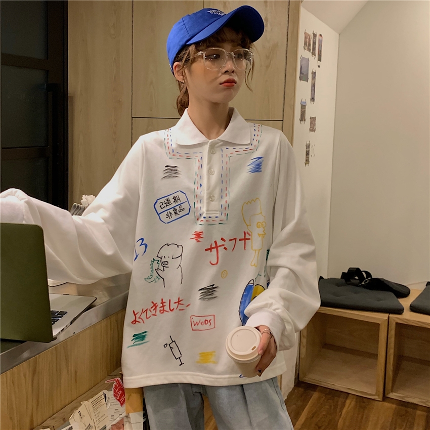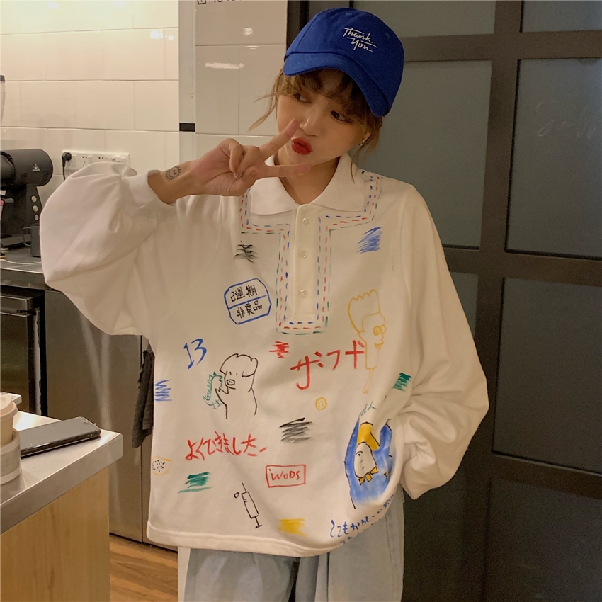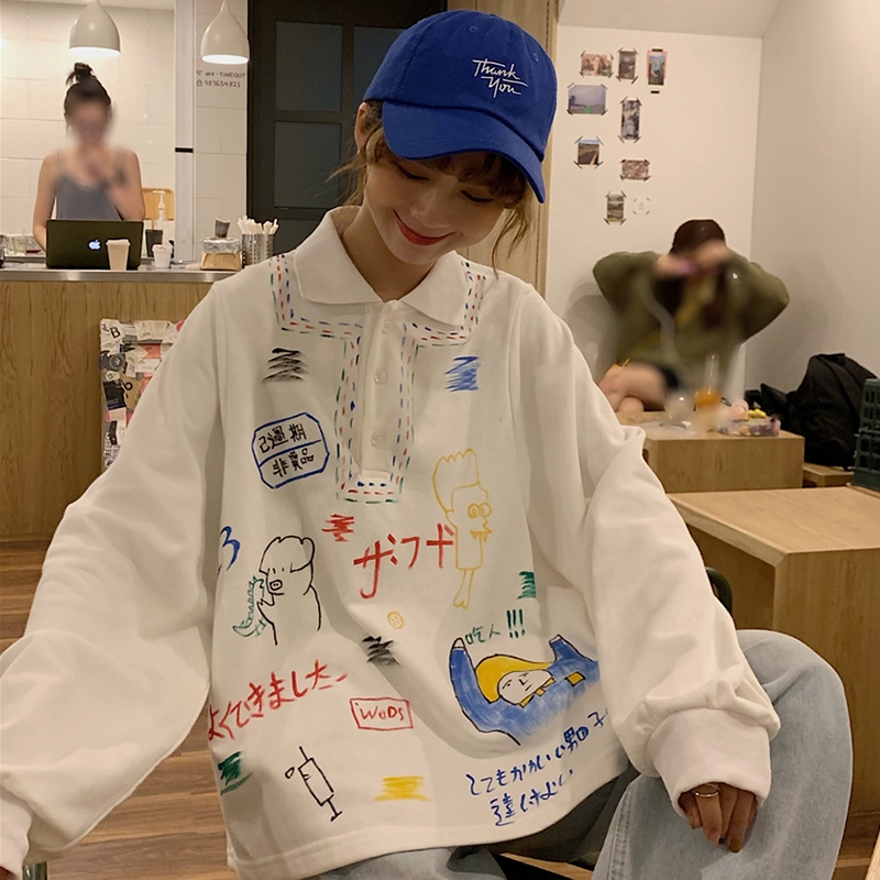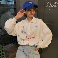 韩版秋冬2020年新款polo衫长袖白色t恤女宽松学生打底衫上衣ins潮