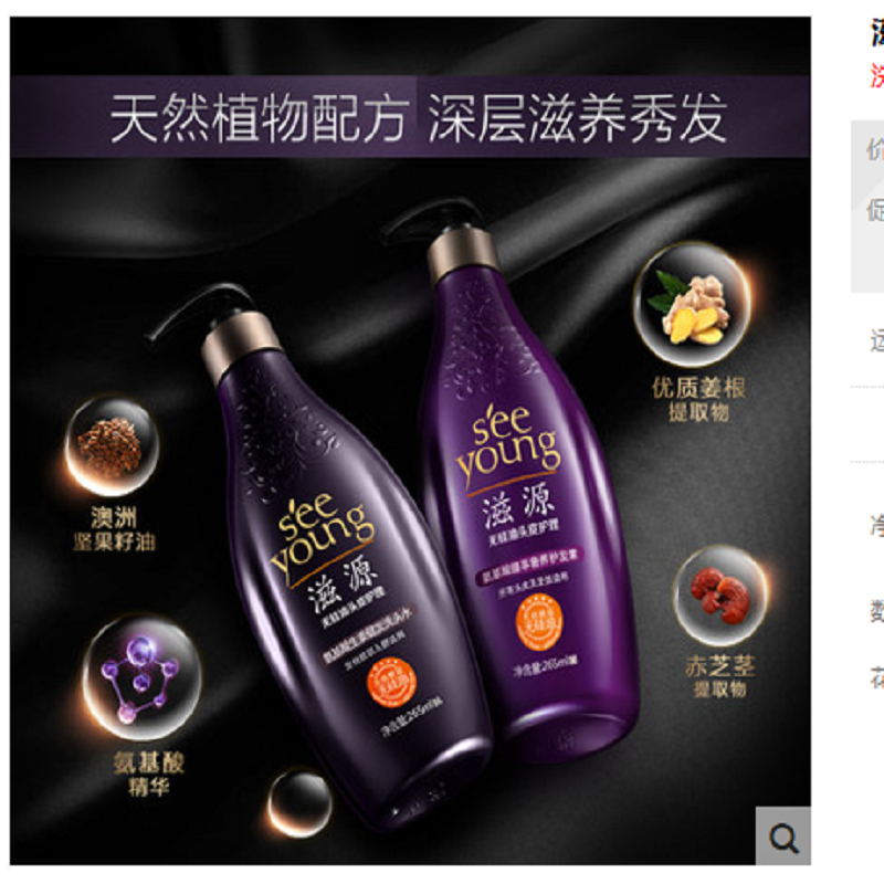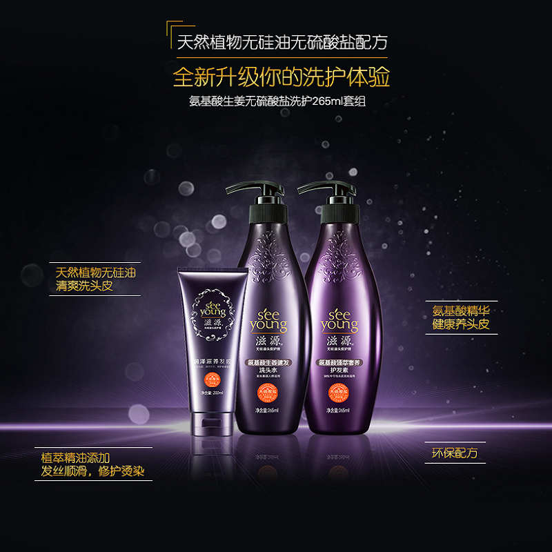 滋源无硅油洗发水氨基酸生姜535洗护发套装