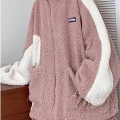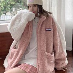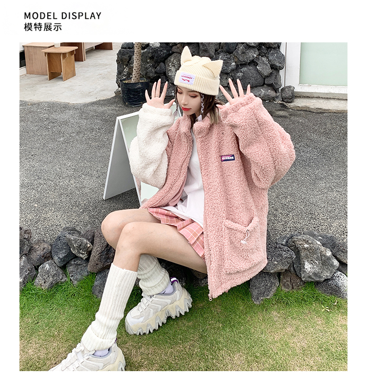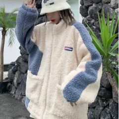 UPWARD LAB拼接羊羔绒外套撞色国潮宽松嘻哈羊羔毛上衣开衫外套女298