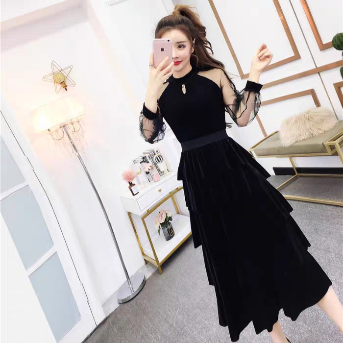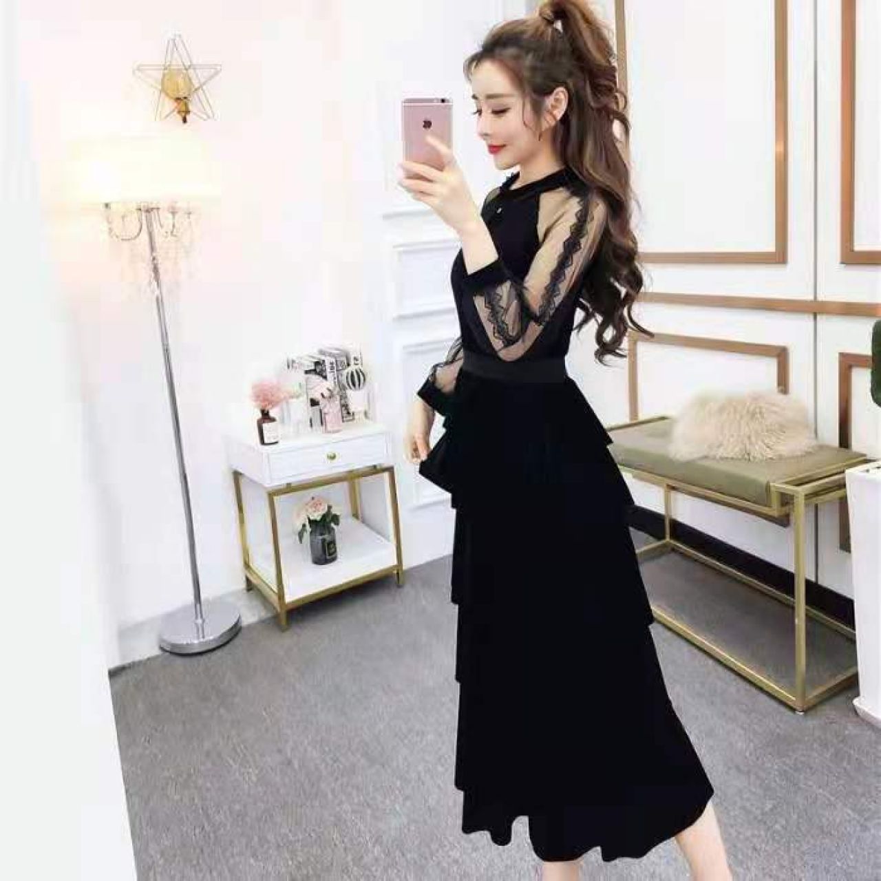 蔚缇2017夏季小花网纱+吊带+喇叭裤三件套女