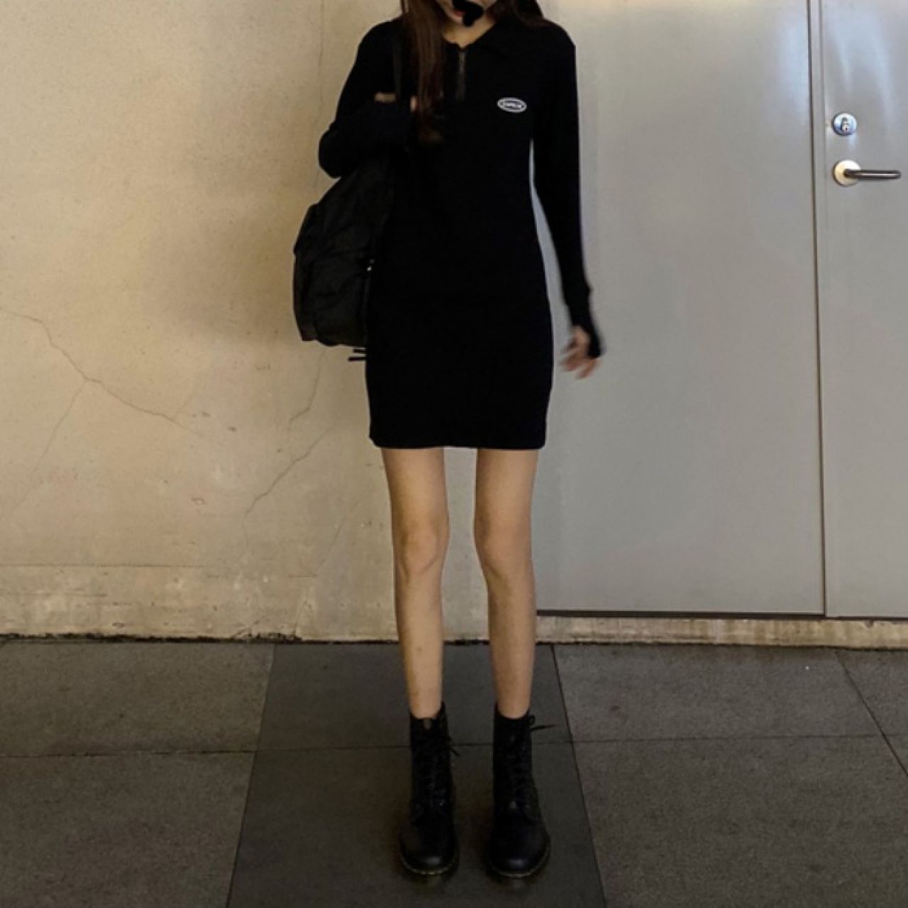 酷酷——小裙子 韩系酷甜少女性感撩人拉链修身小字母连衣裙