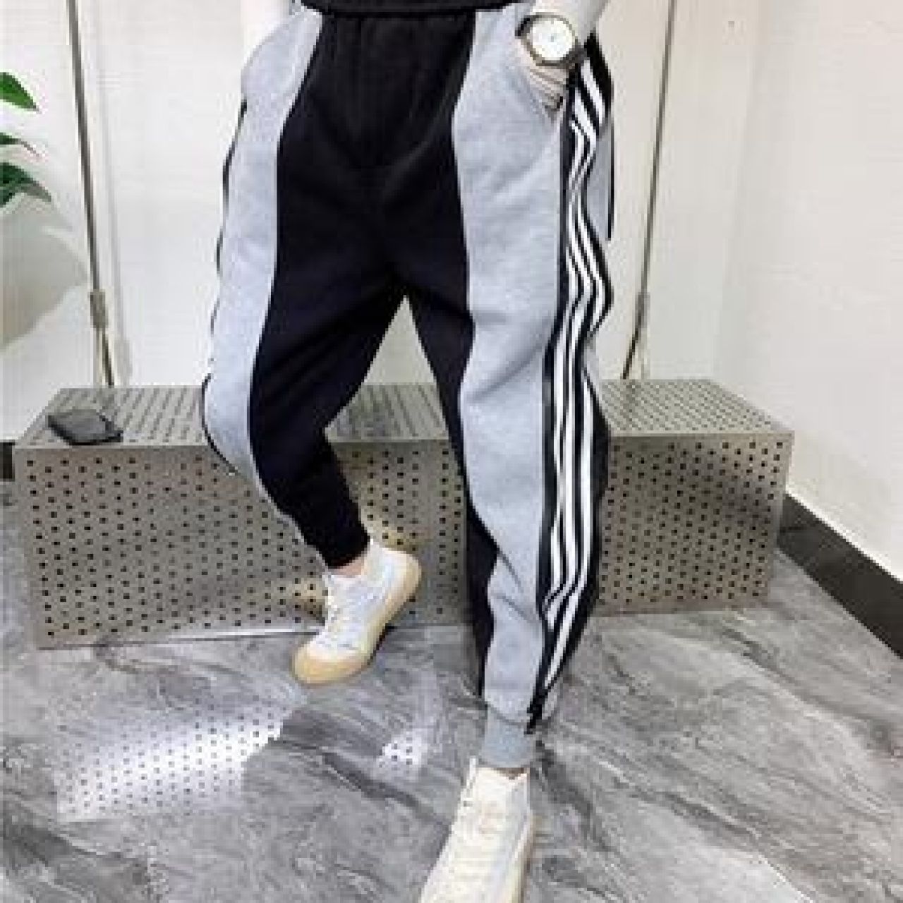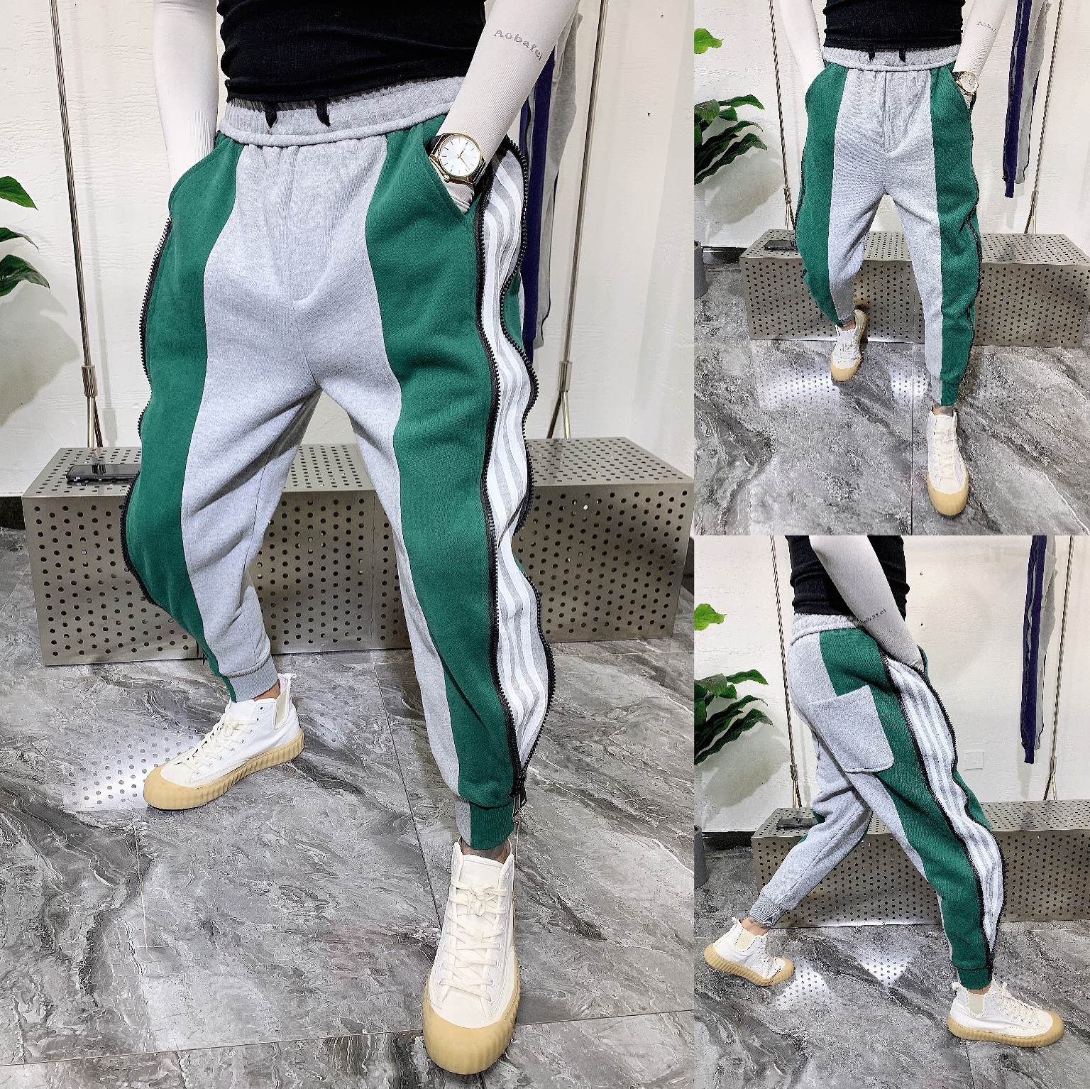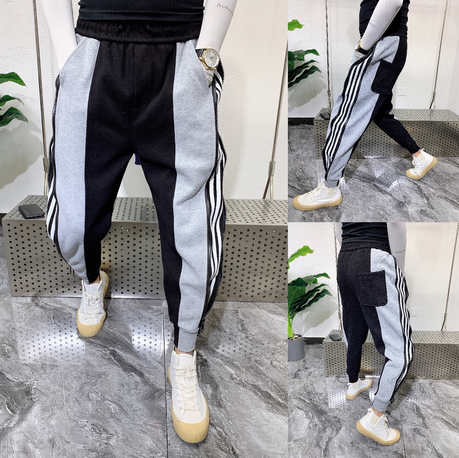 男士2020秋冬加厚潮牌时尚修身束脚垮裤休闲裤男潮流宽松运动裤男