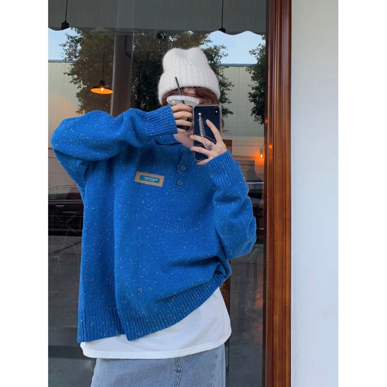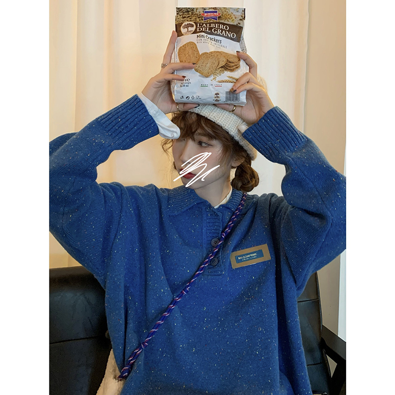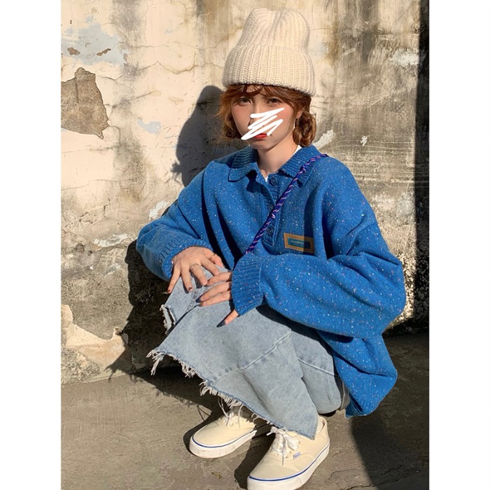 宽松百搭复古皮牌针织上衣设计感彩点Polo衫