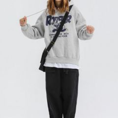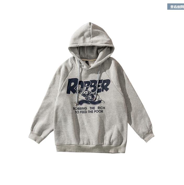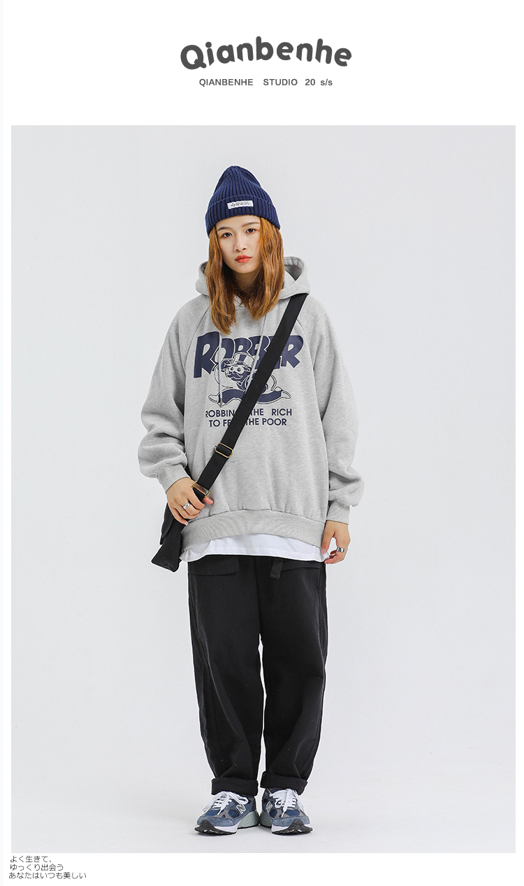 日系复古加绒连帽oversize字母印花卫衣男女2020冬装新款宽松上衣(144)