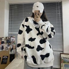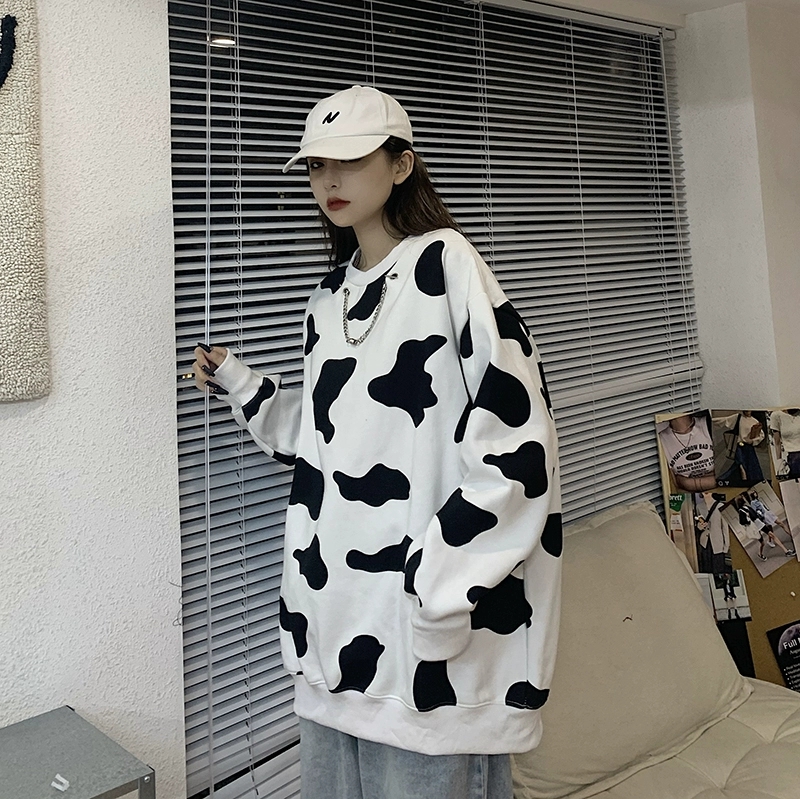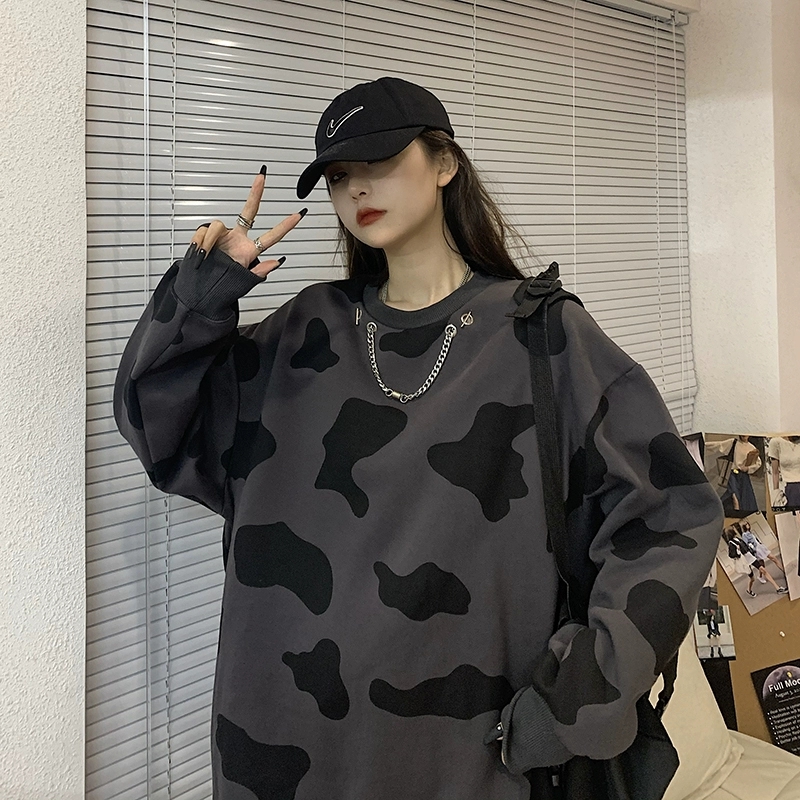 加绒卫衣女2020秋冬季新款ins潮韩版原宿风奶牛宽松圆领加厚上衣