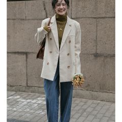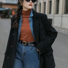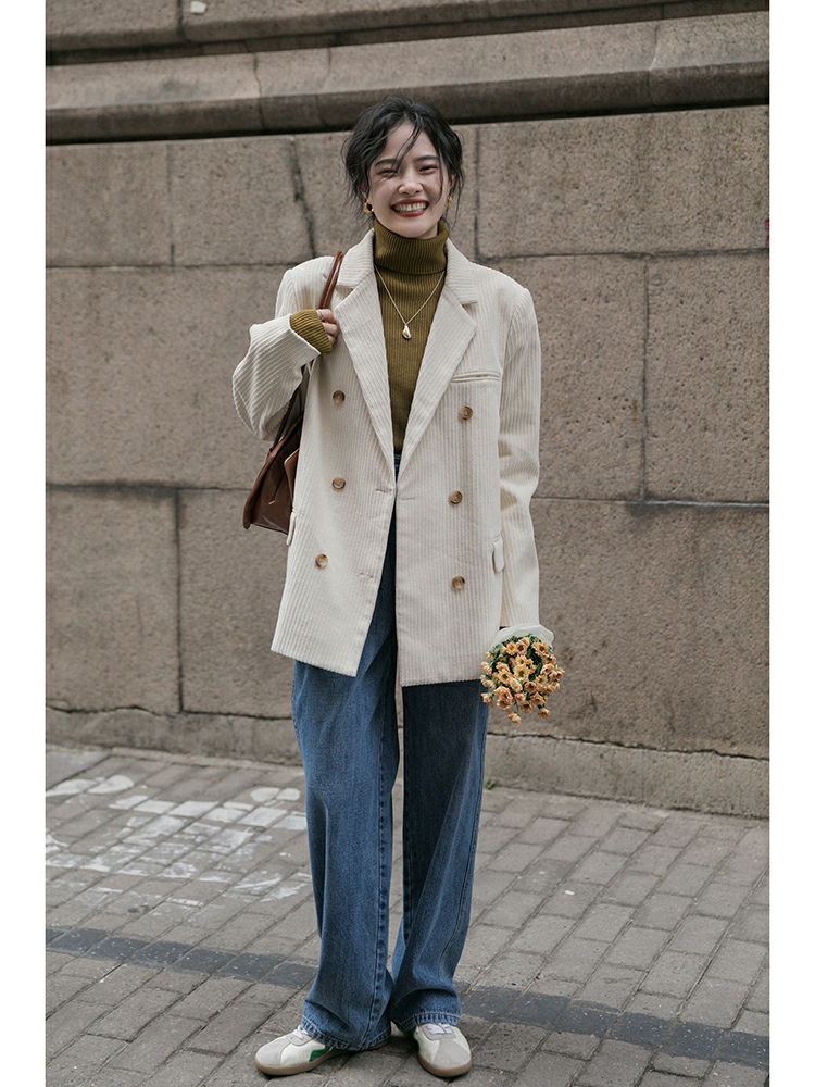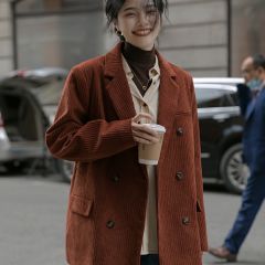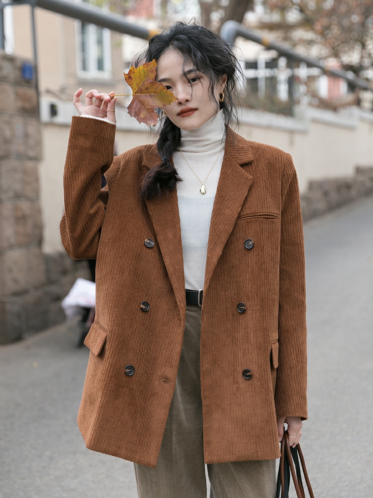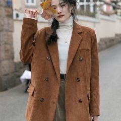 灯芯绒西装外套女秋冬韩版休闲加厚复古夹棉西服2020新款