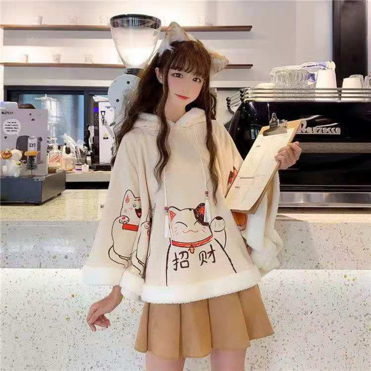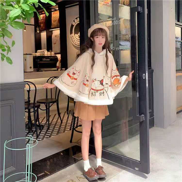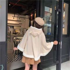 36元包邮 外套2020年新款女加绒加厚秋冬百搭短款小个子可爱日系披肩斗篷式 杏色 均码