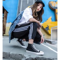 回力高帮帆布鞋女2020新款ulzzang鞋子女秋冬百搭加绒黑色板鞋女