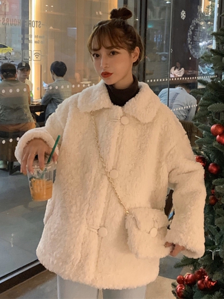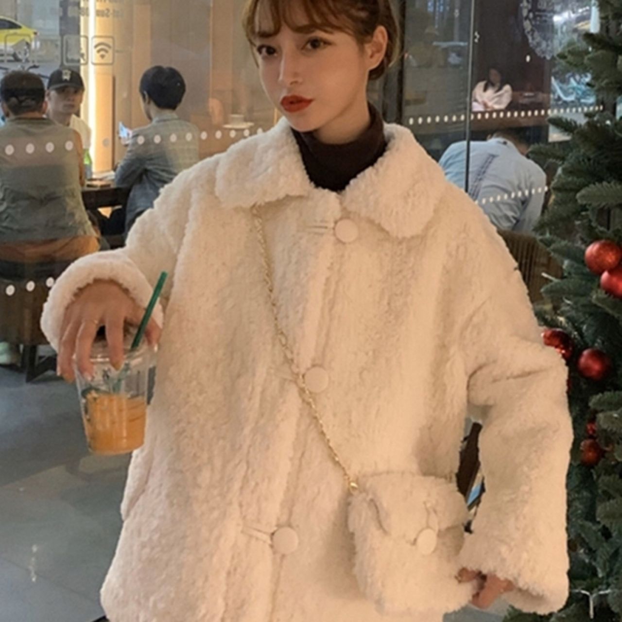 韩国东大门女装新款2020秋冬小个子保暖羊羔绒毛短款外套女开衫韩版冬季仿兔毛绒皮草宽松加厚短款羊羔毛茸茸毛毛外套女