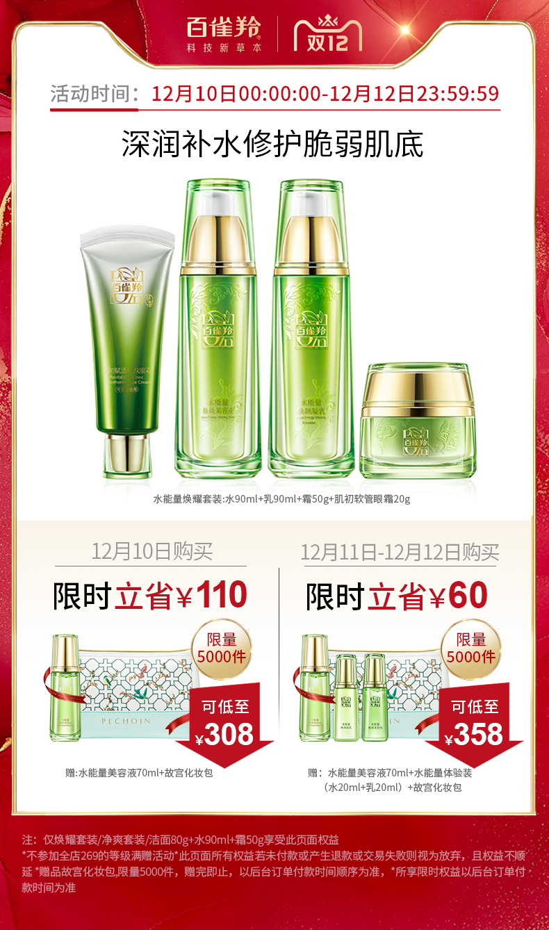 百雀羚水能量焕耀套装补水保湿护肤套装