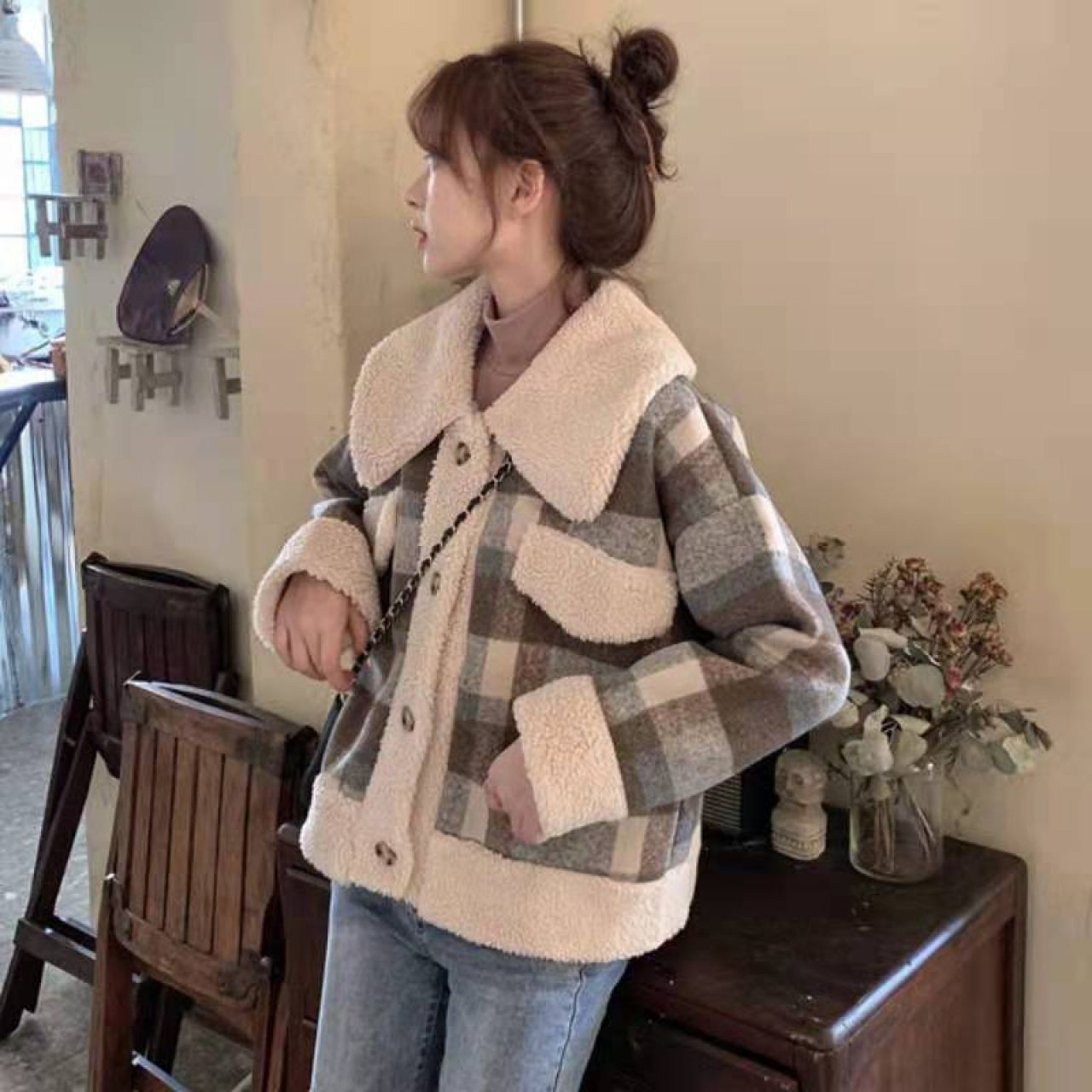 秋冬2020年新款羊羔毛加棉宽松百搭毛呢外套