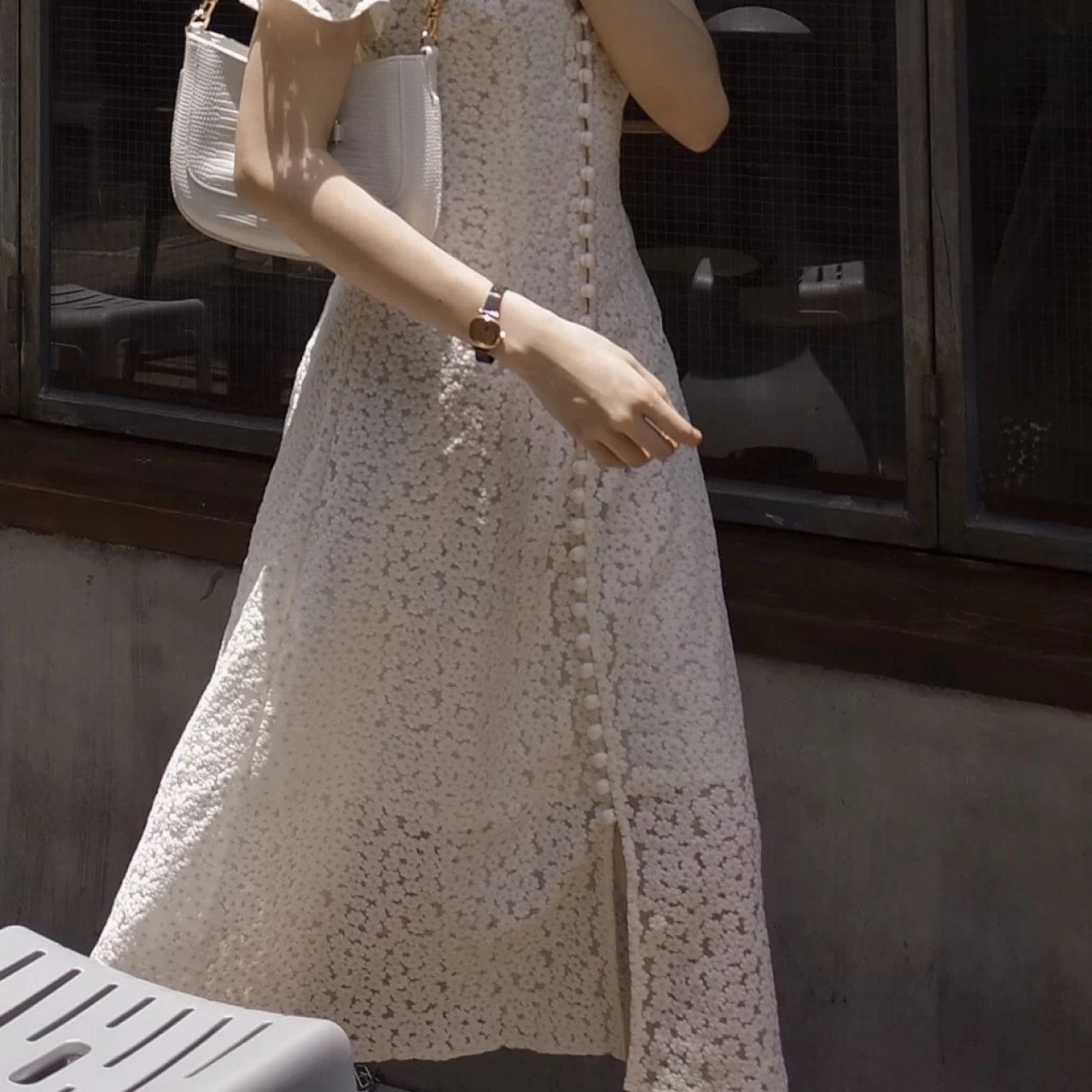 超仙女森系收腰长裙显瘦显高气质女神范衣服法式优雅复古连衣裙子