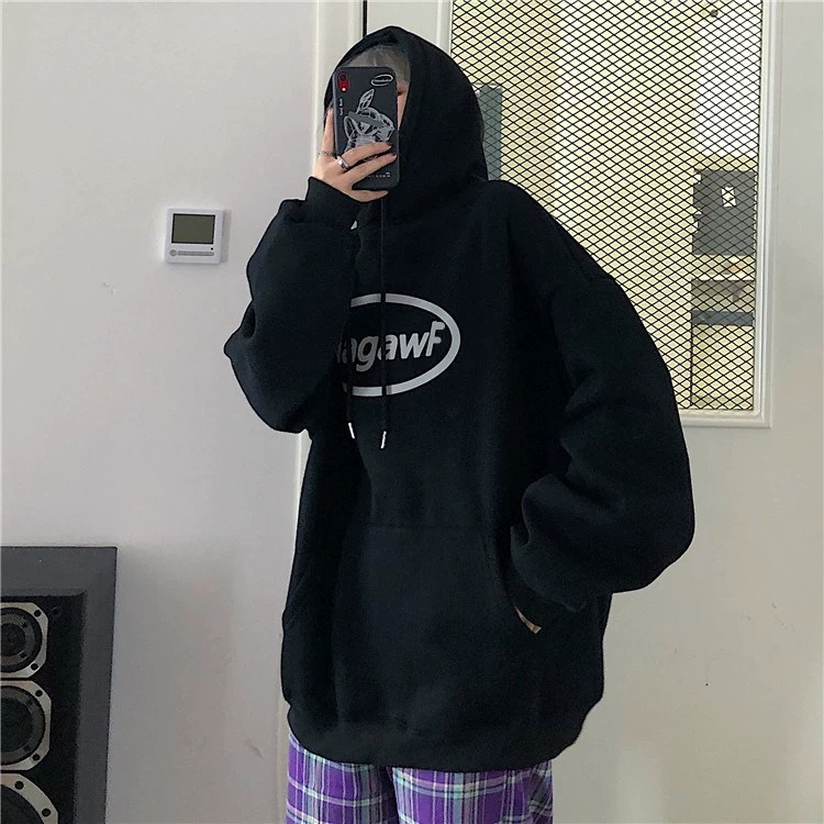 宽松长袖女t恤加绒韩版ins圆领百搭中长款上衣
