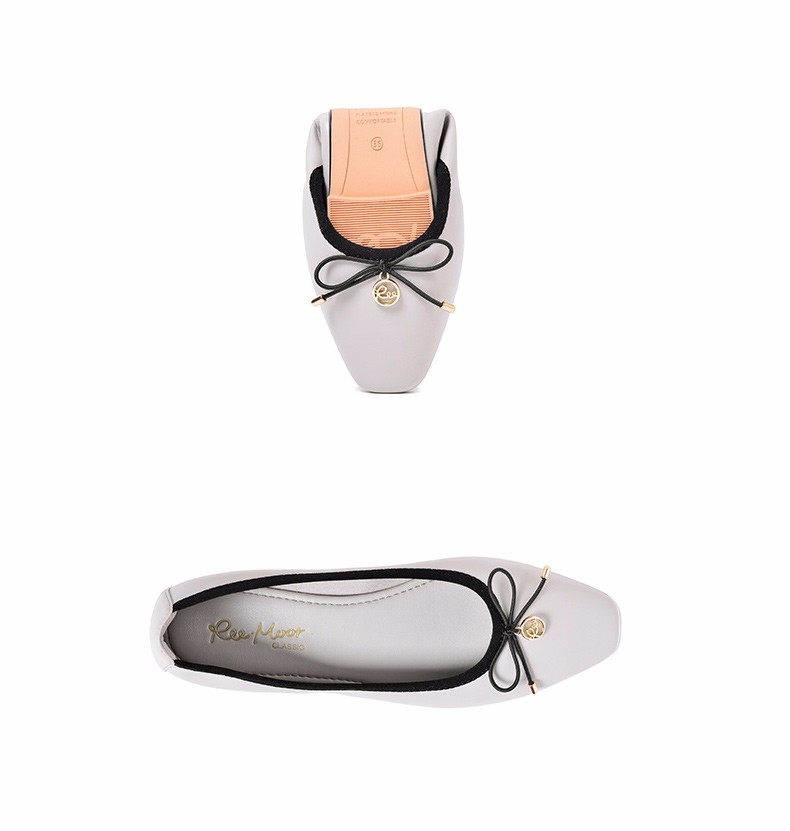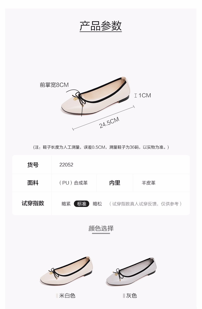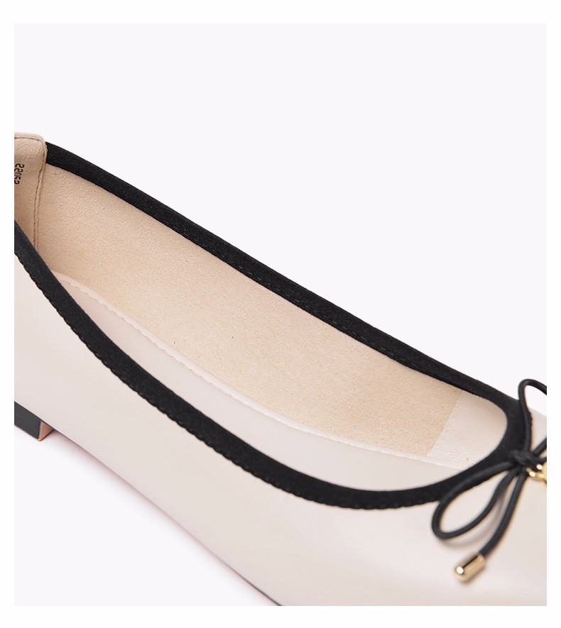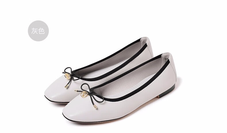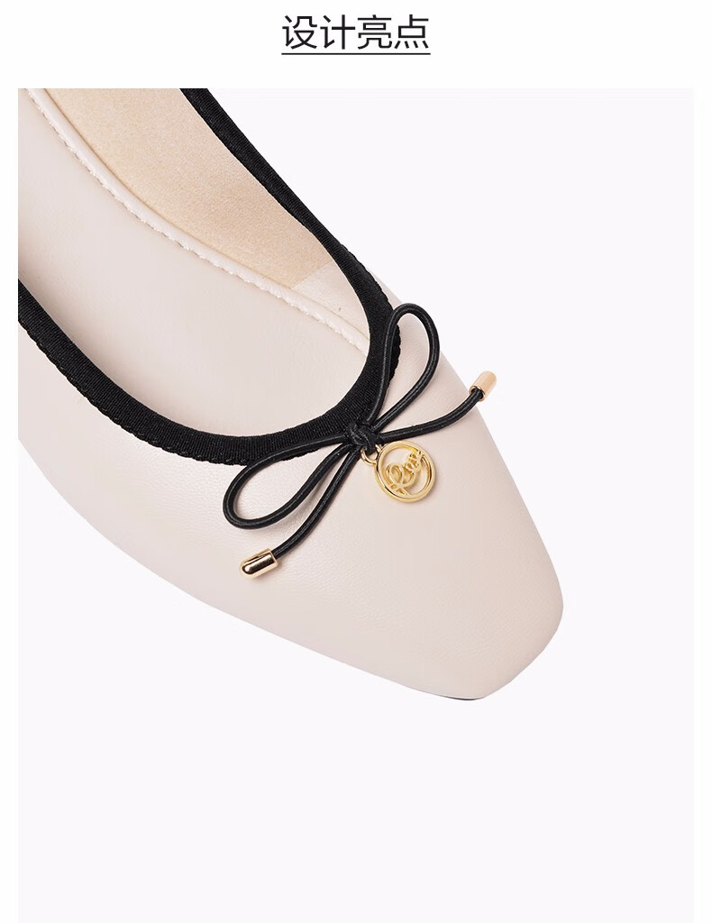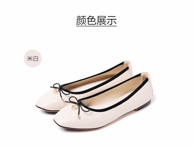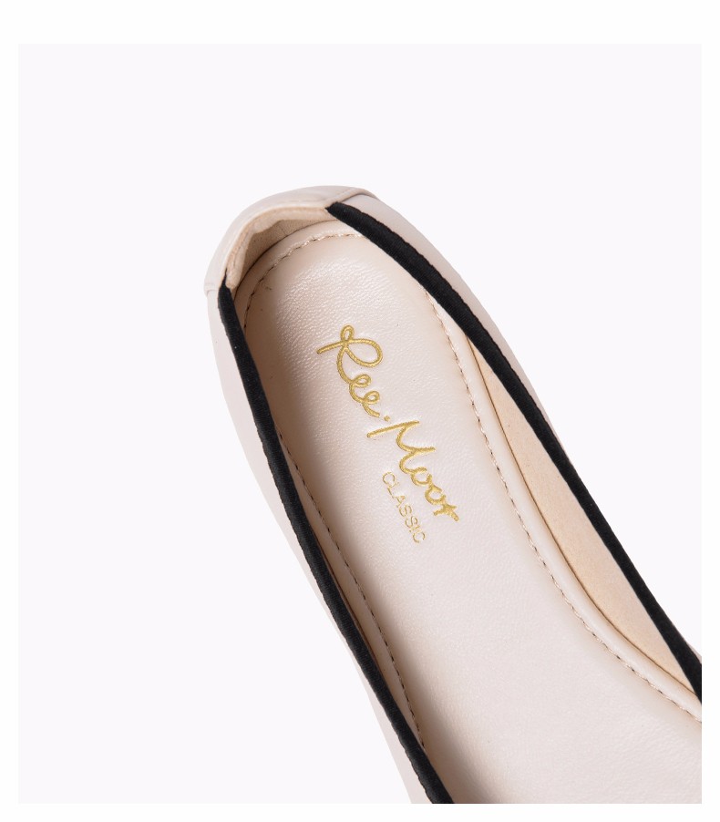 商品名称:REEMOOR真皮芭蕾单鞋女2020新款春季方头平底软底蛋卷鞋睿慕女鞋 米白色 38